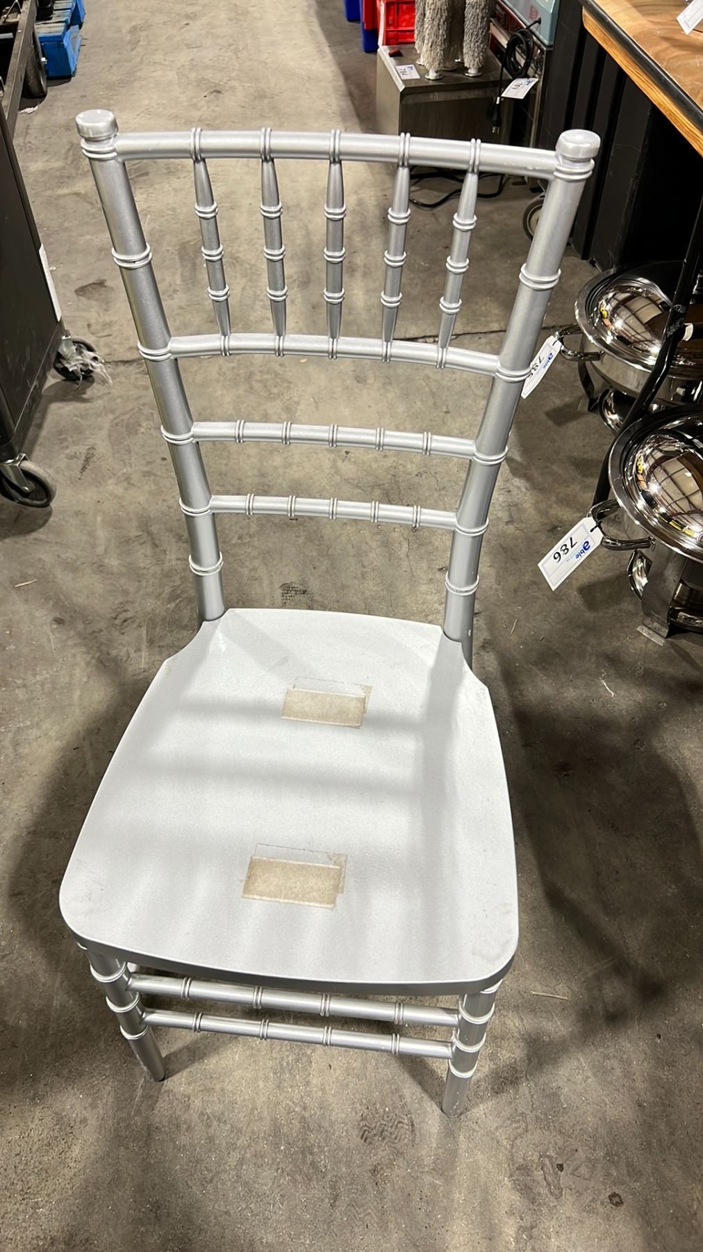 STACK OF 9 SILVER RESIN CHIAVARI EVENT 18" CHAIRS