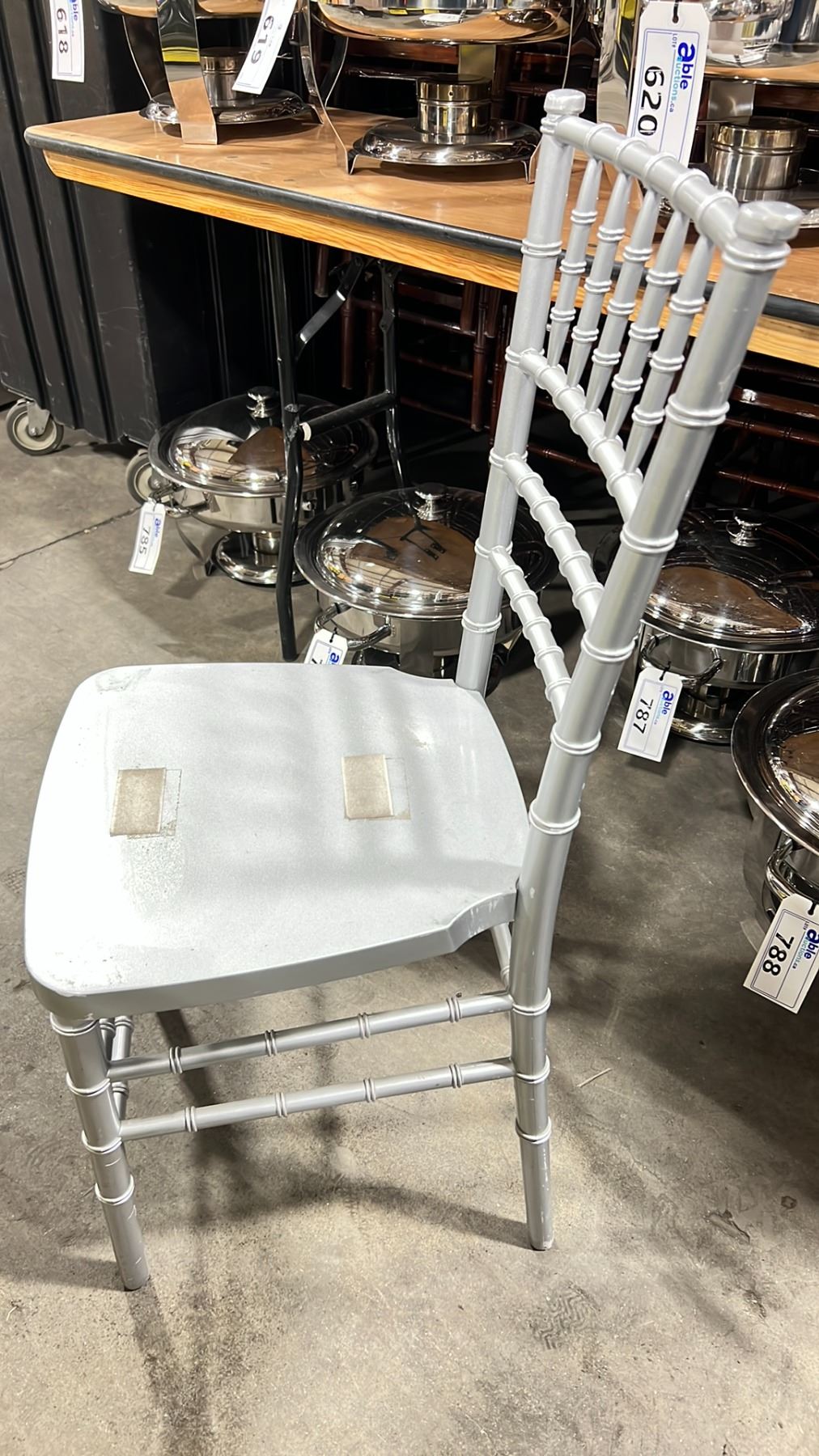 STACK OF 9 SILVER RESIN CHIAVARI EVENT 18" CHAIRS