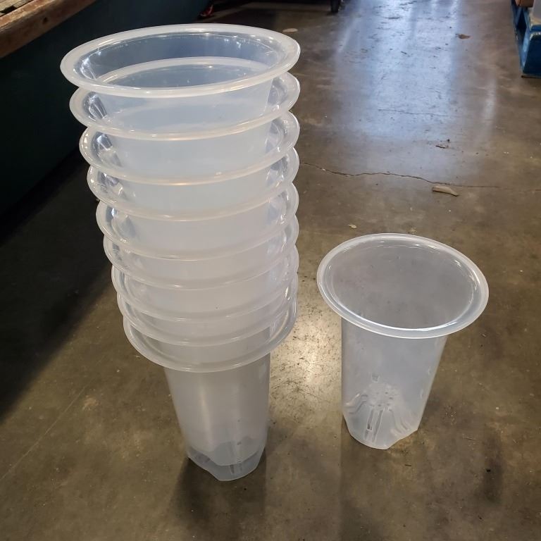 STACK OF NEW 10 PLASTIC ORCHID GARDEN PLANT CONTAINERS CLEAR RETAIL $46 FOR 4