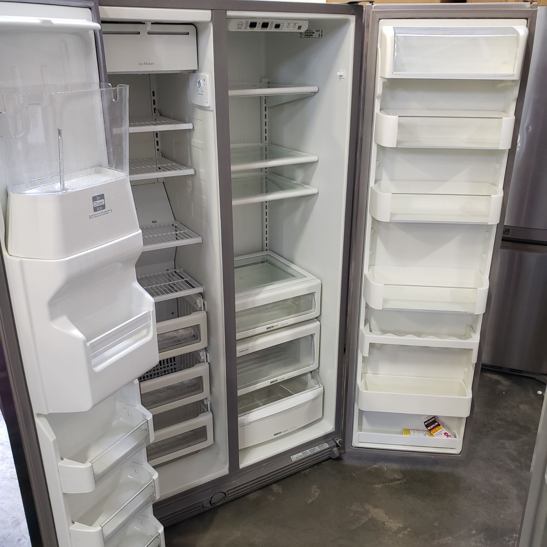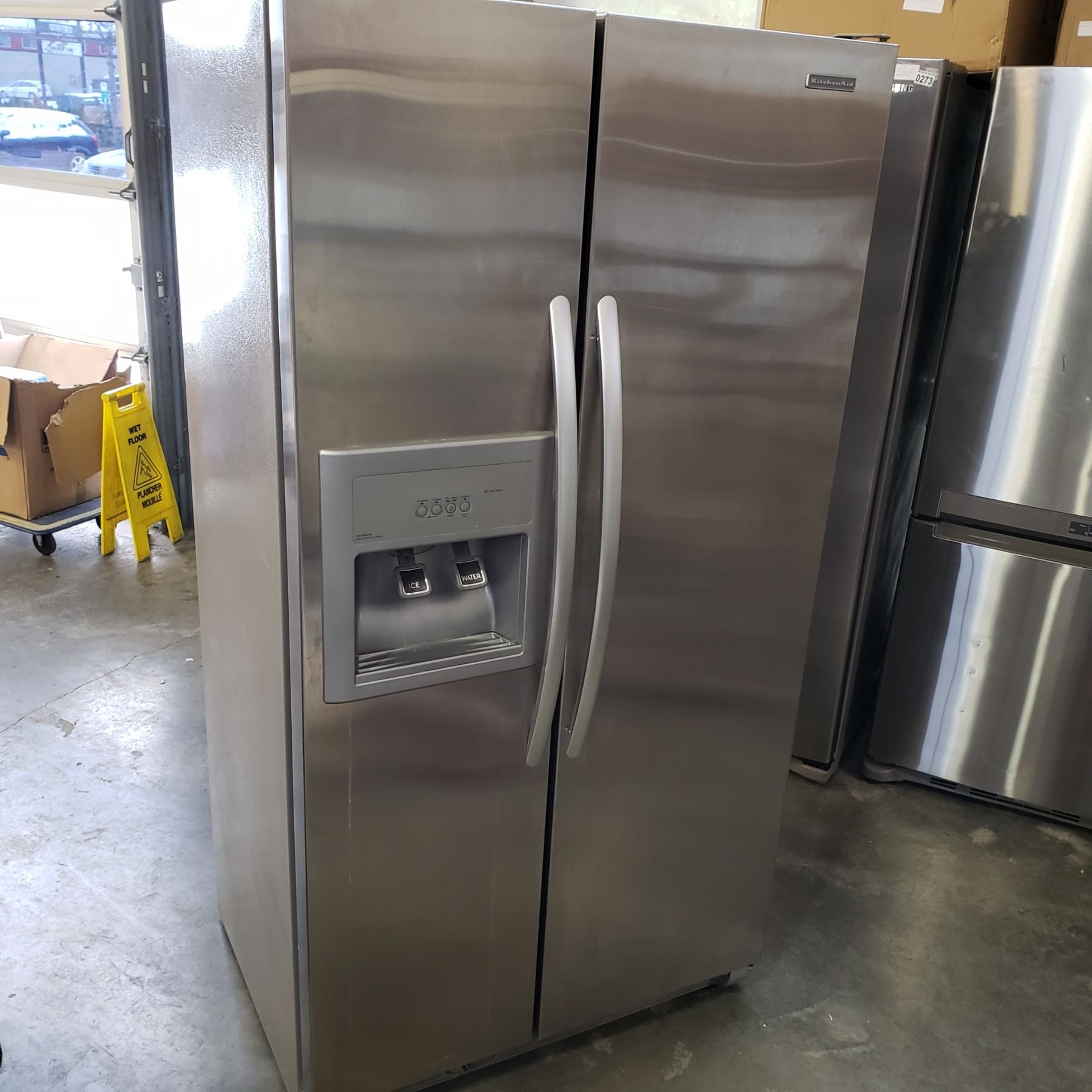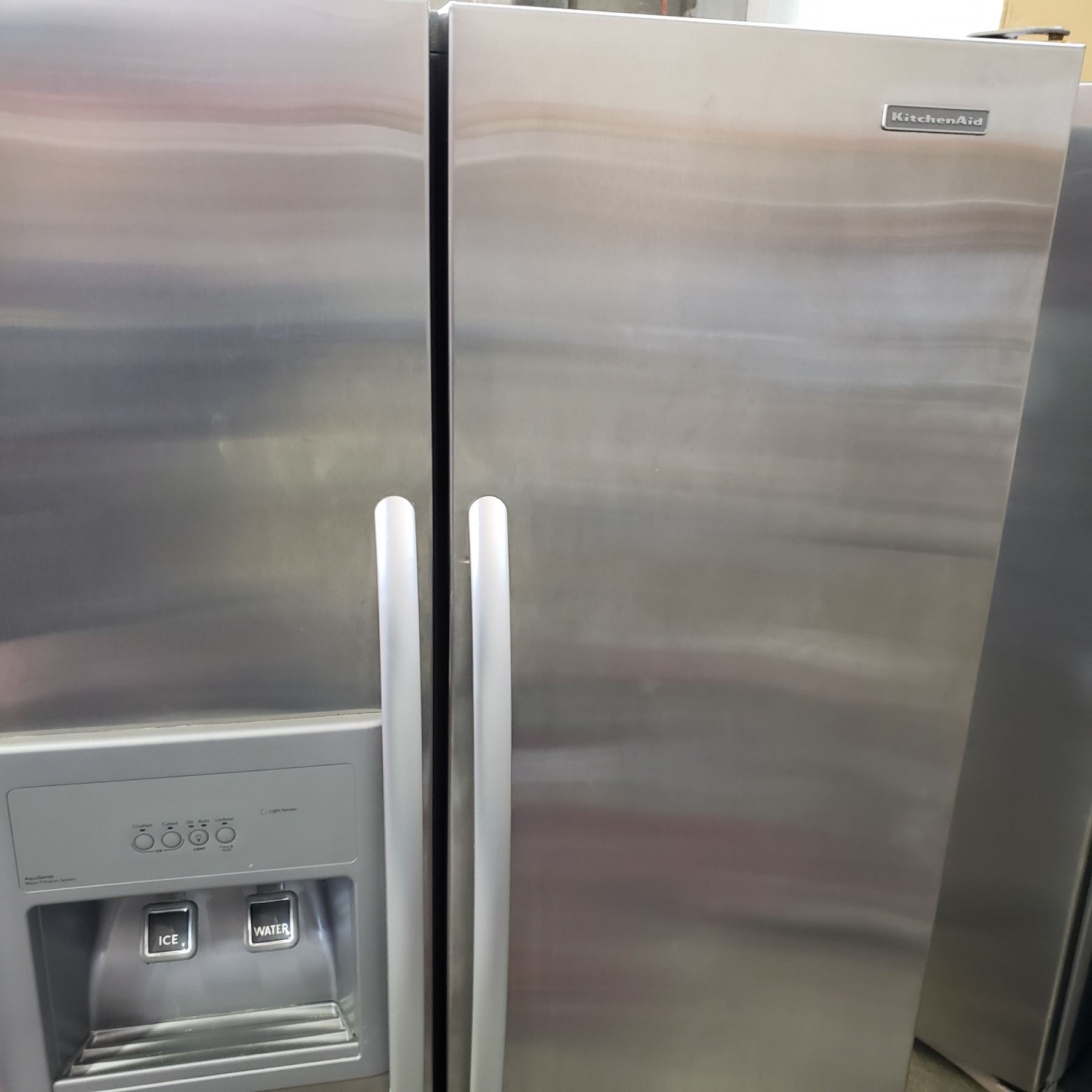 STAINLESS KITCHENAID SIDE BY SIDE REFRIDGERATOR WITH ICE MAKER AND WATER - TESTED AND WORKING