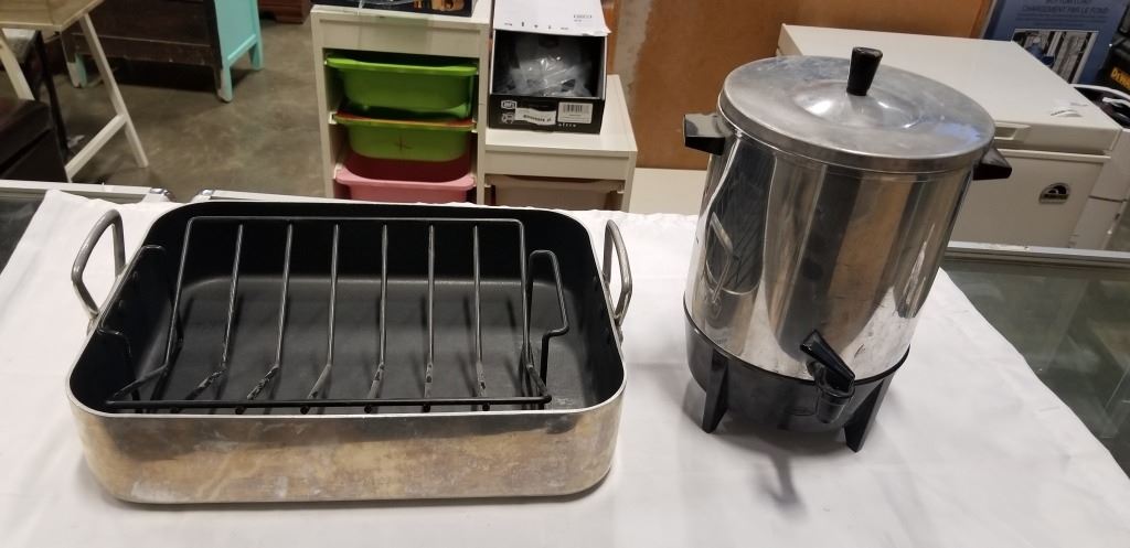 STAINLESS ROASTER WITH RACK AND COFFEE PERCULATOR