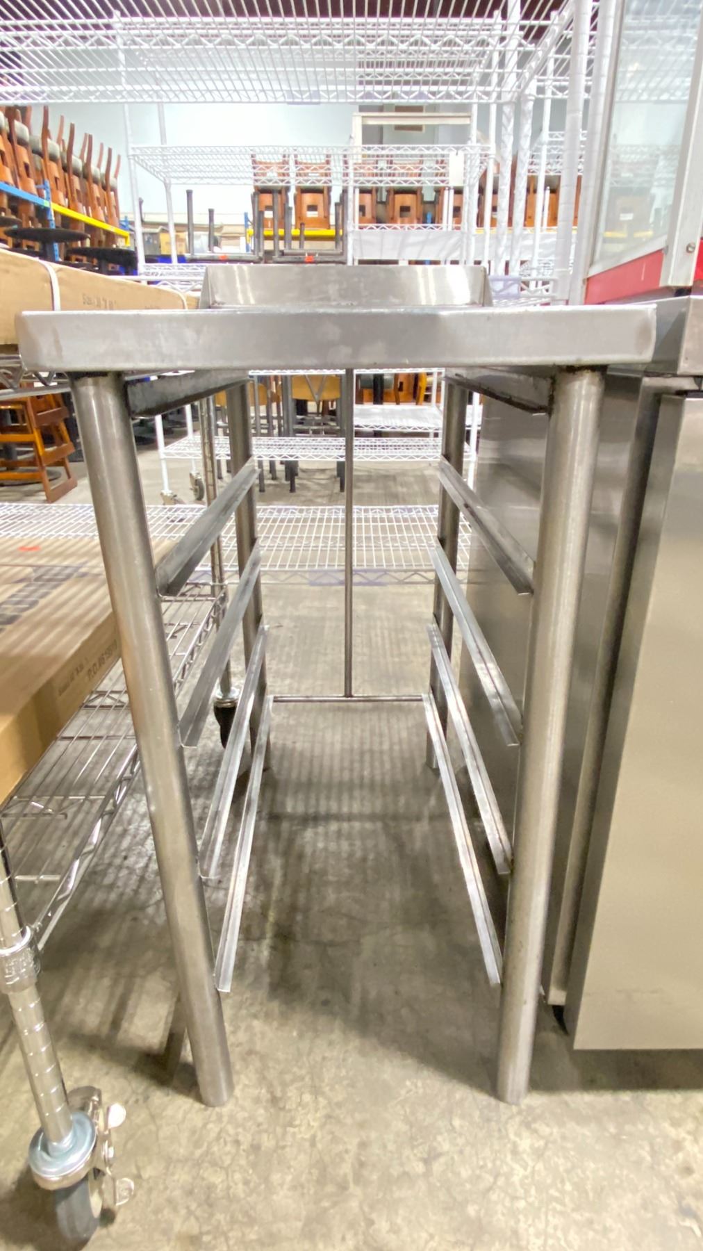 STAINLESS STEEL 18"W X 31"D X 34"H COMMERCIAL 4 TRAY STORAGE EQUIPMENT STAND WITH BACKSPLASH