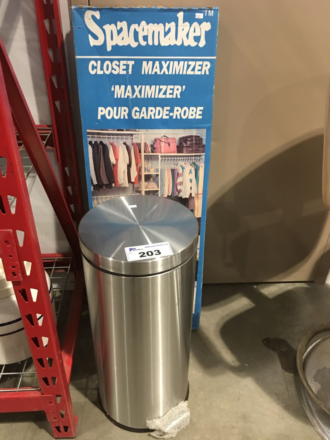 STAINLESS STEEL GARBAGE CAN & SPACESAVER CLOSET MAXIMIZER