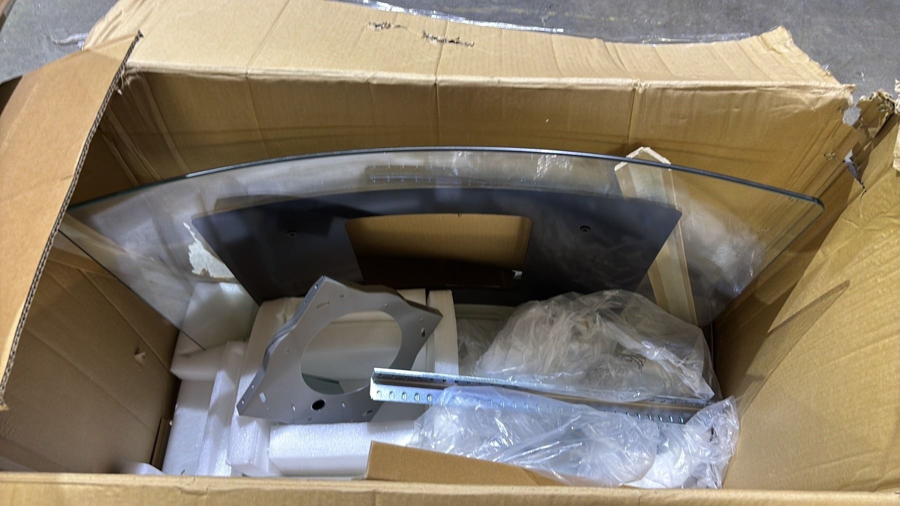 STAINLESS STEEL & GLASS RANGE HOOD IN BOX - *WORKING CONDITION UNKNOWN/MAY BE MISSING PARTS AND OR PIECES*