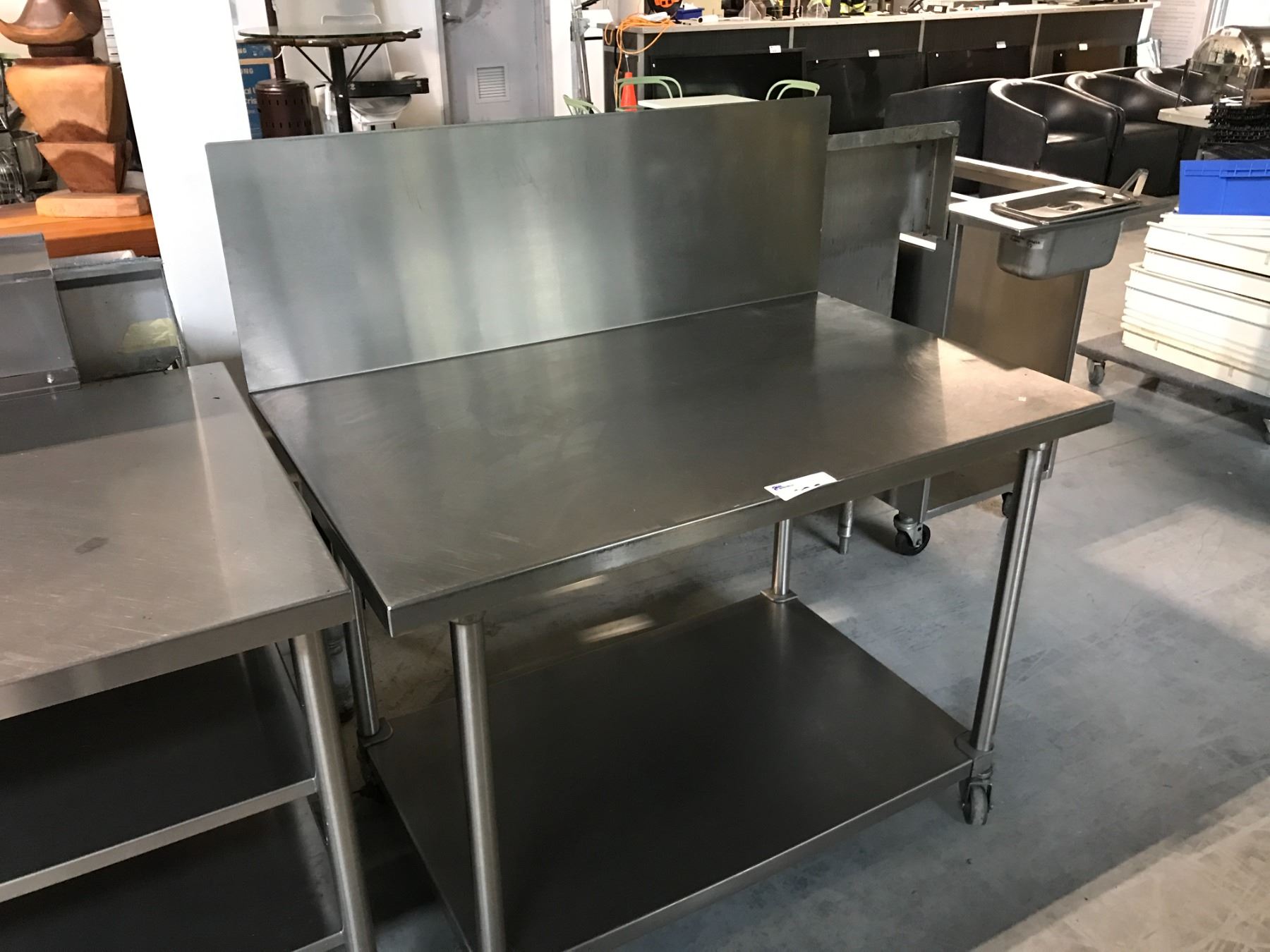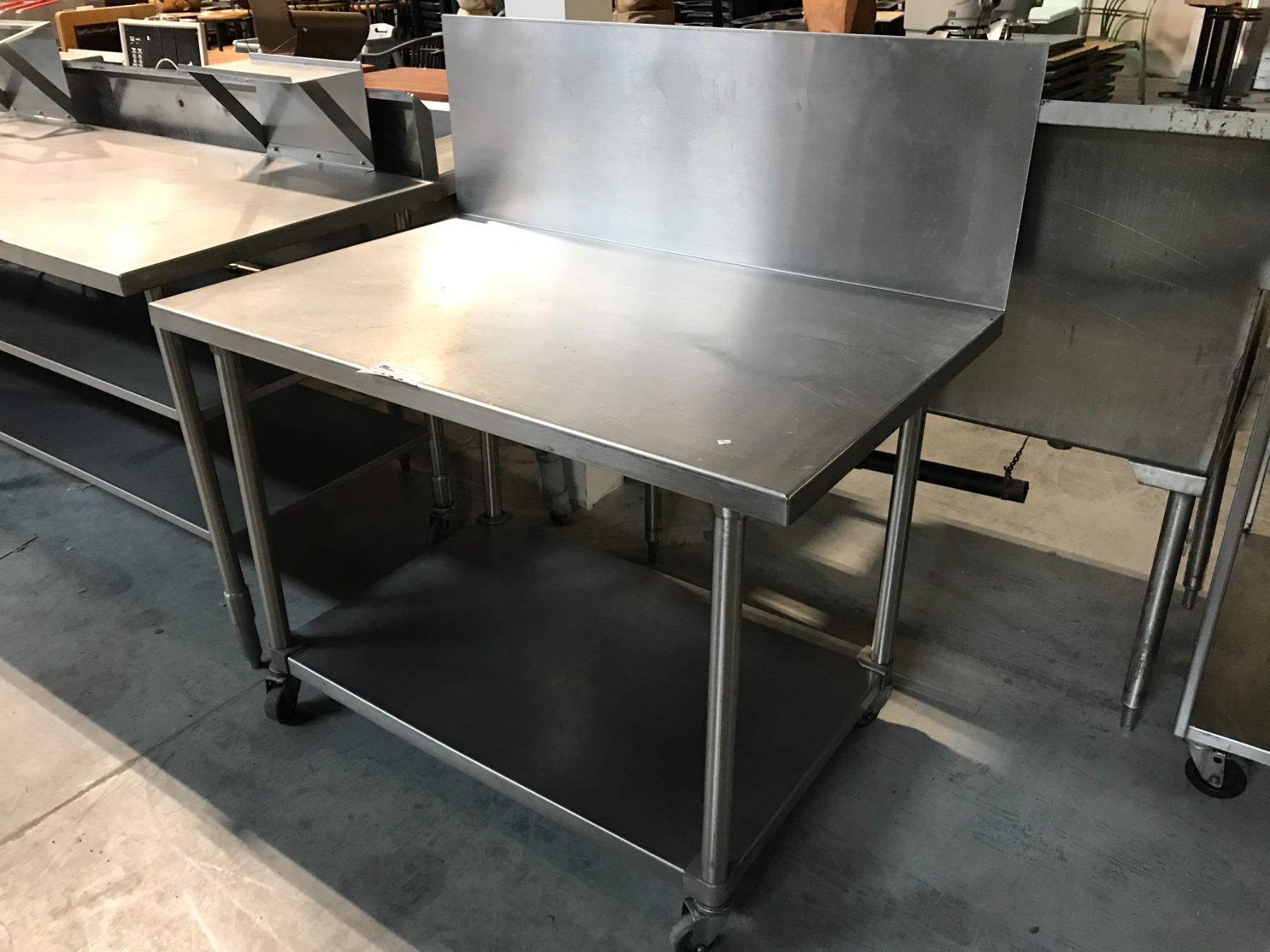 STAINLESS STEEL MOBILE PREP TABLE WITH BACK SPLASH 48"W X 30"D X 34"H