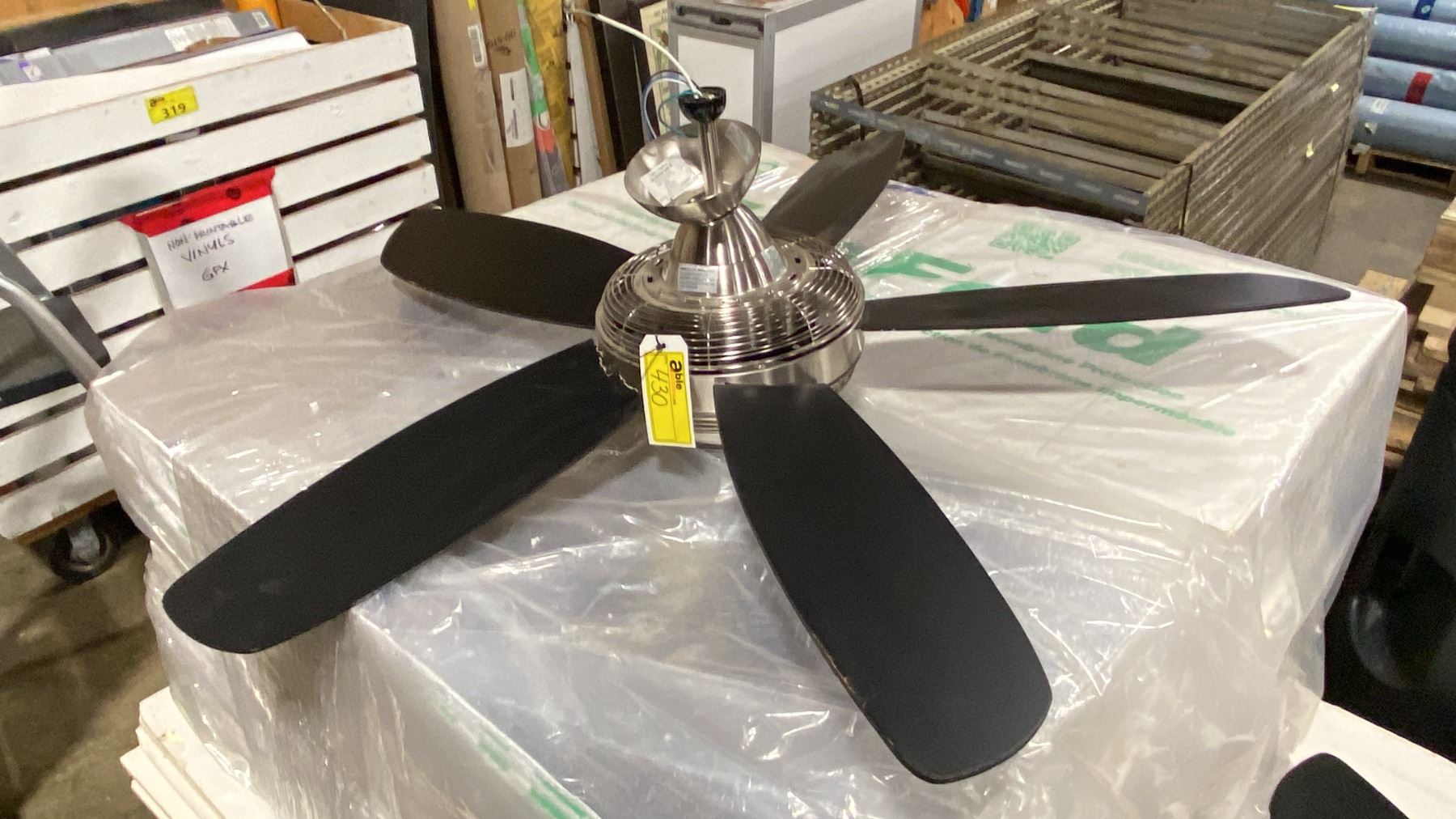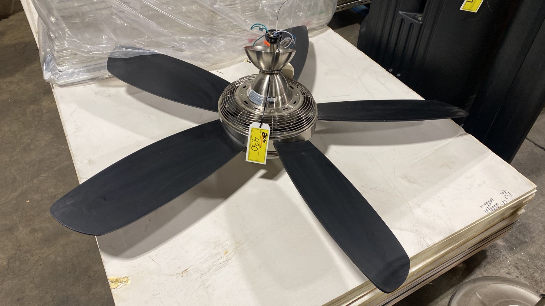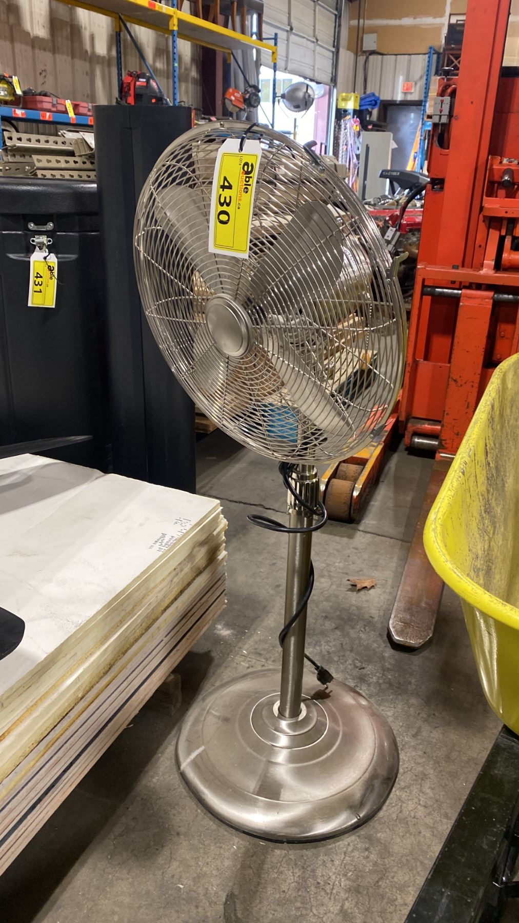 STAINLESS STEEL PEDESTAL FAN & 2 LARGE CEILING FANS *1 BLADE HAS DAMAGE*