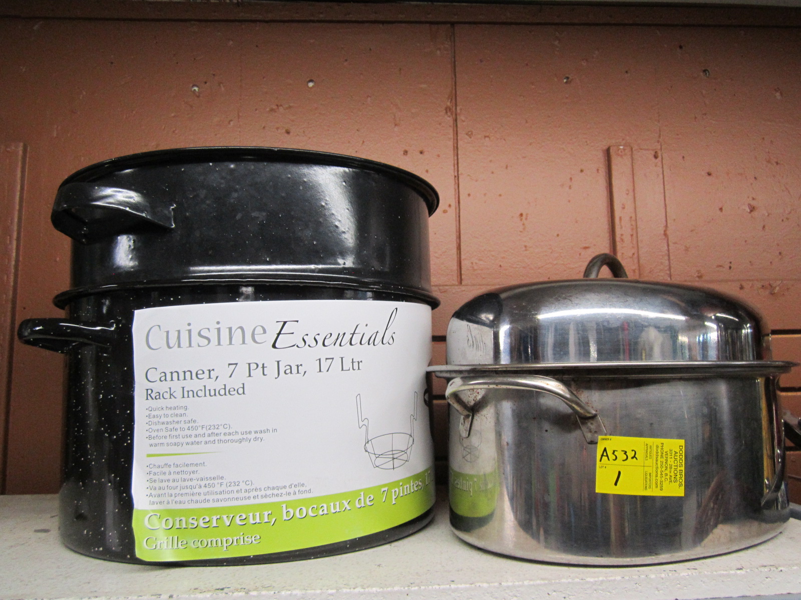STAINLESS STEEL ROASTER & 2 LG. CANNING POTS