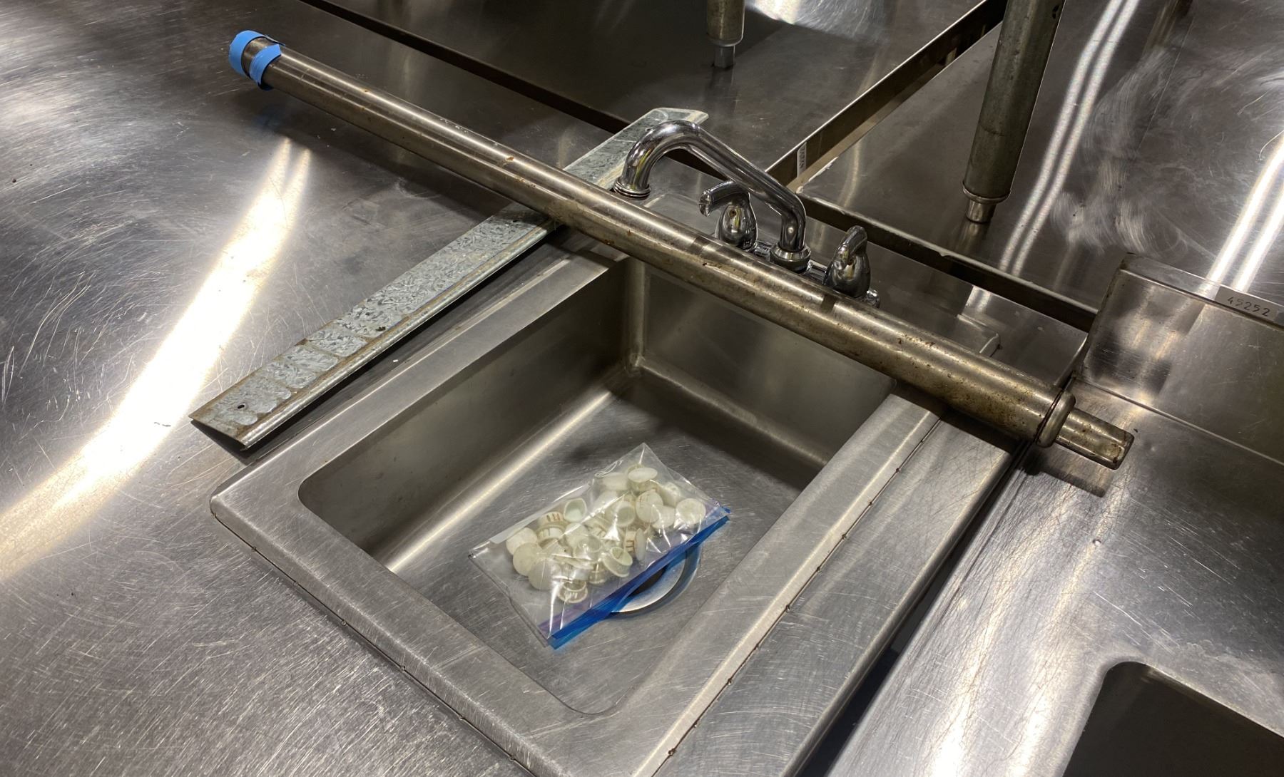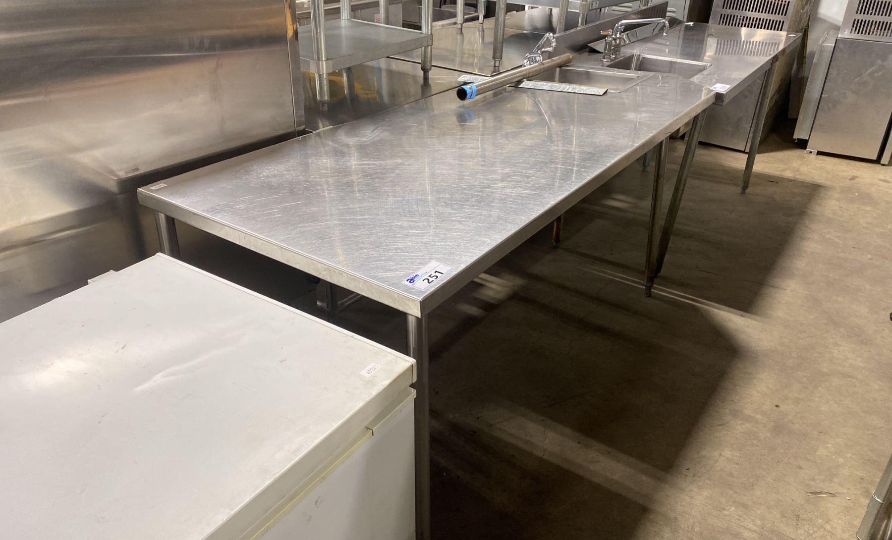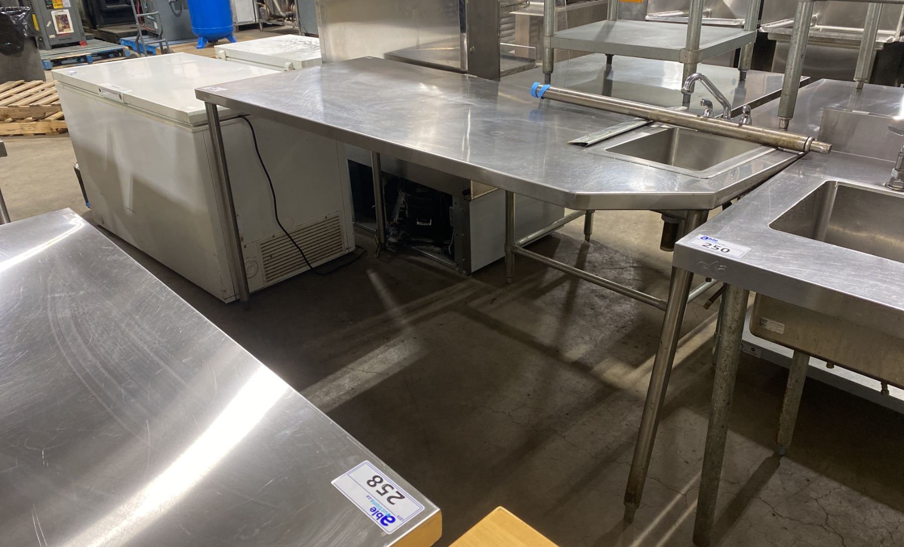 STAINLESS STEEL SINGLE BAY COMMERCIAL 74"W X 32"D X 37"H WASH SINK / TABLE WITH FAUCET ** LEG NEEDS REPAIR **