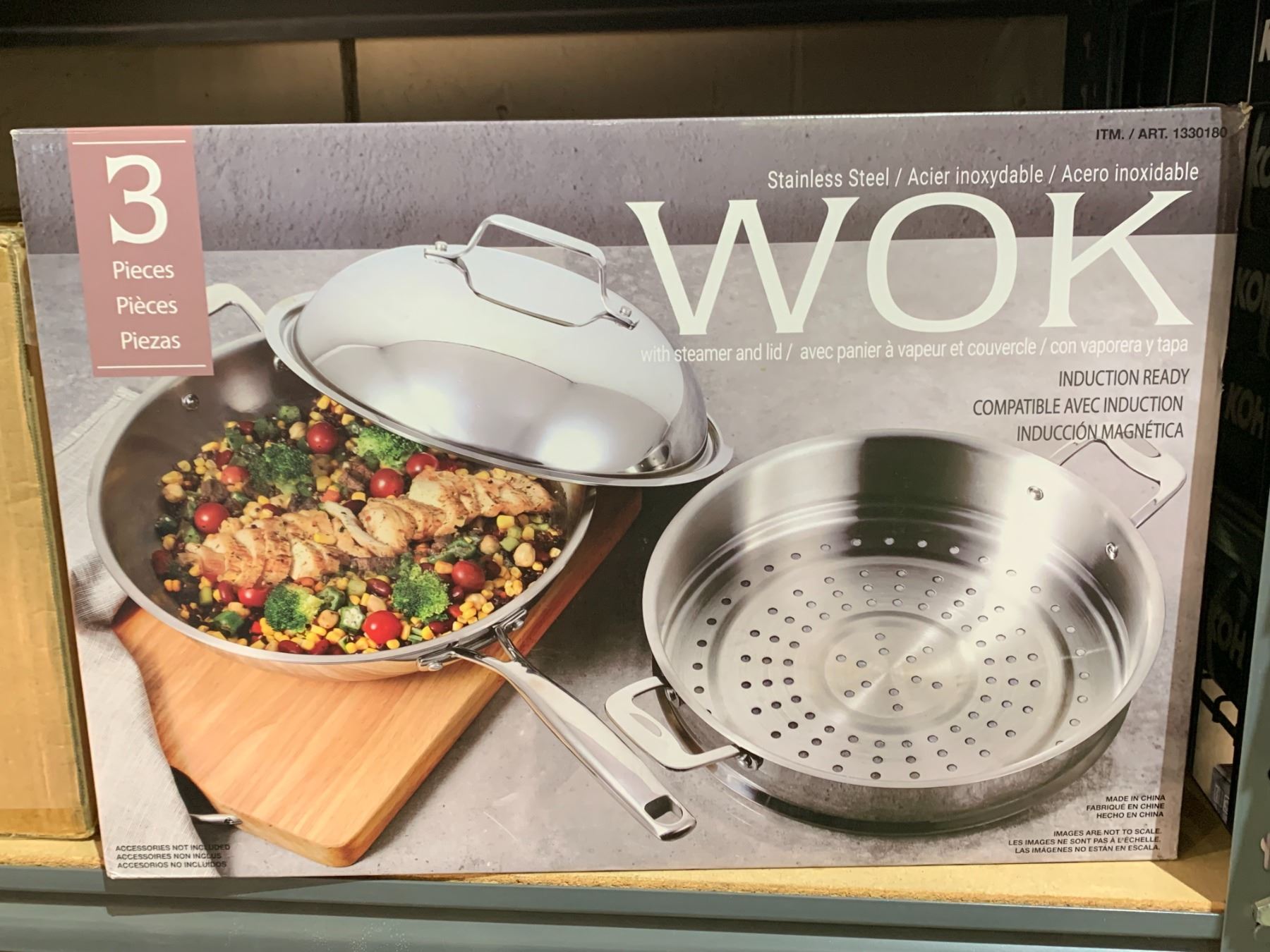 STAINLESS STEEL WOK WITH STEAMER AND LID