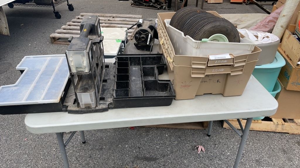 STANLEY HARDWARE ORGANIZER WITH BINS AND DOLLY WHEELS