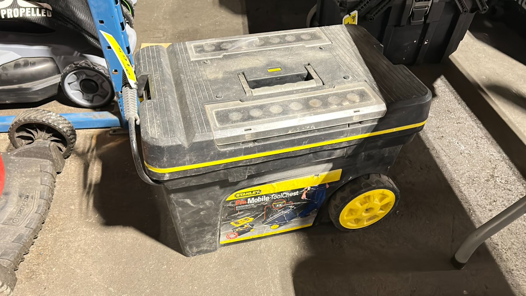 STANLEY MOBILE TOOL CHEST WITH EXTENDABLE HANDLEBAR (24"W 14"D 16"H) *CONTENTS INCLUDED*