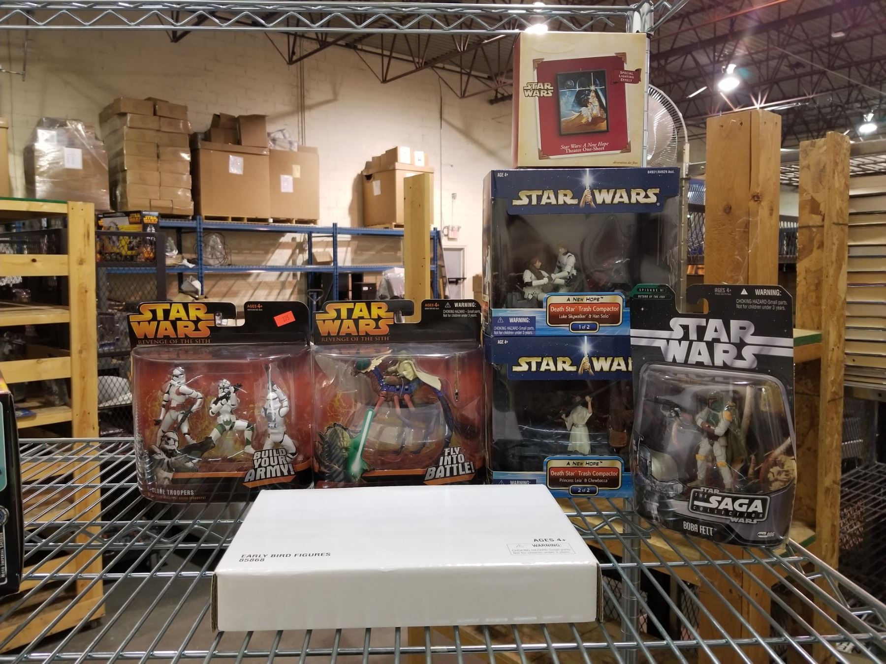 STAR WARS REVENGE OF THE SITH CLONE TROOPERS & YODA, STAR WARS THE SAGA COLLECTION BOBA FETT, STAR WARS A NEW HOPE DEATH STAR TRASH COMPACTOR 1 & 2, STAR WARS A NEW HOPE THEATER ONE-SHEET, EARLY BIRD FIGURES 85868