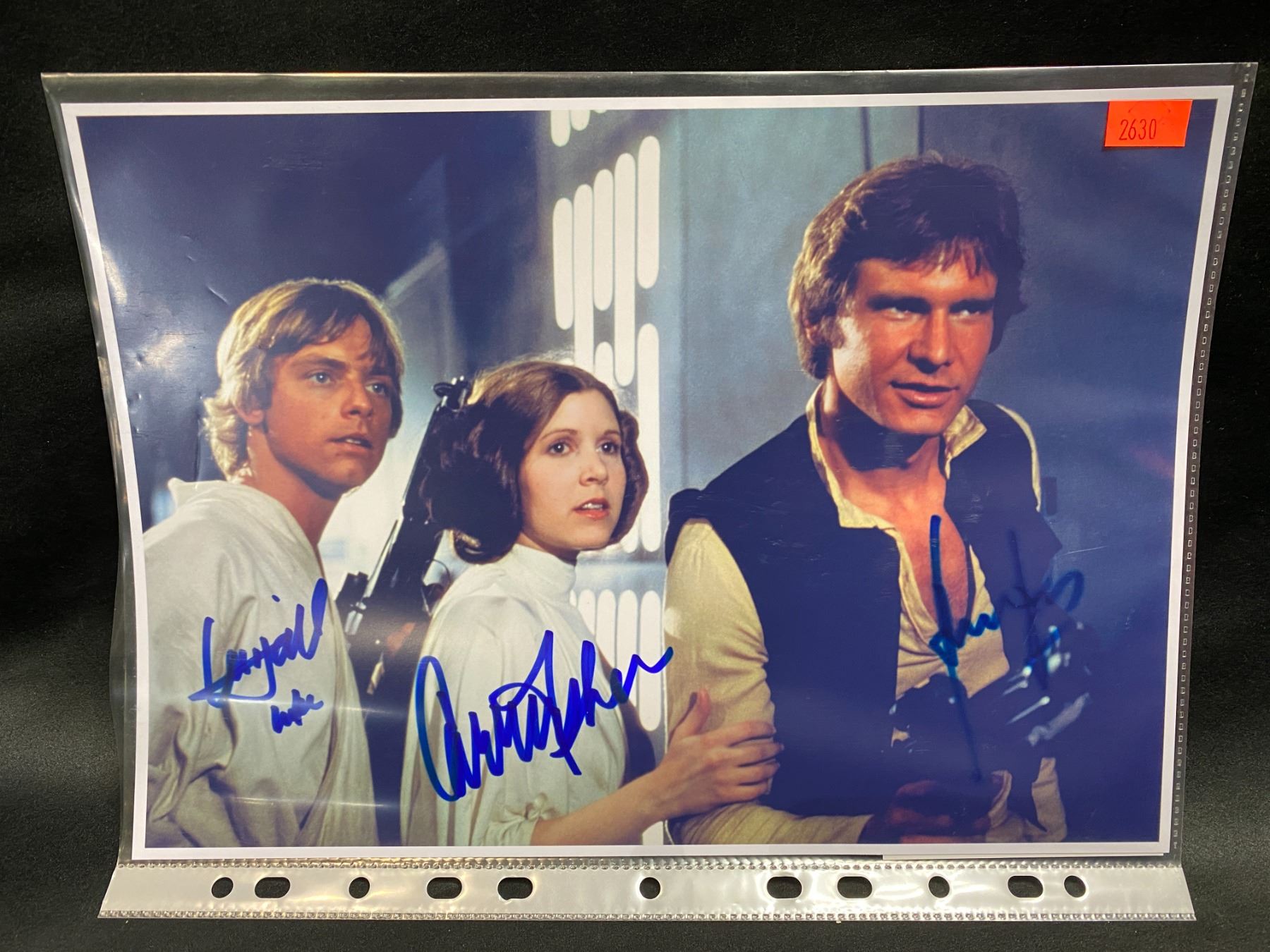 STAR WARS SIGNED PHOTO (3 SIGNATURES) HARRISON FORD, CARRIE FISHER, MARK HAMILL