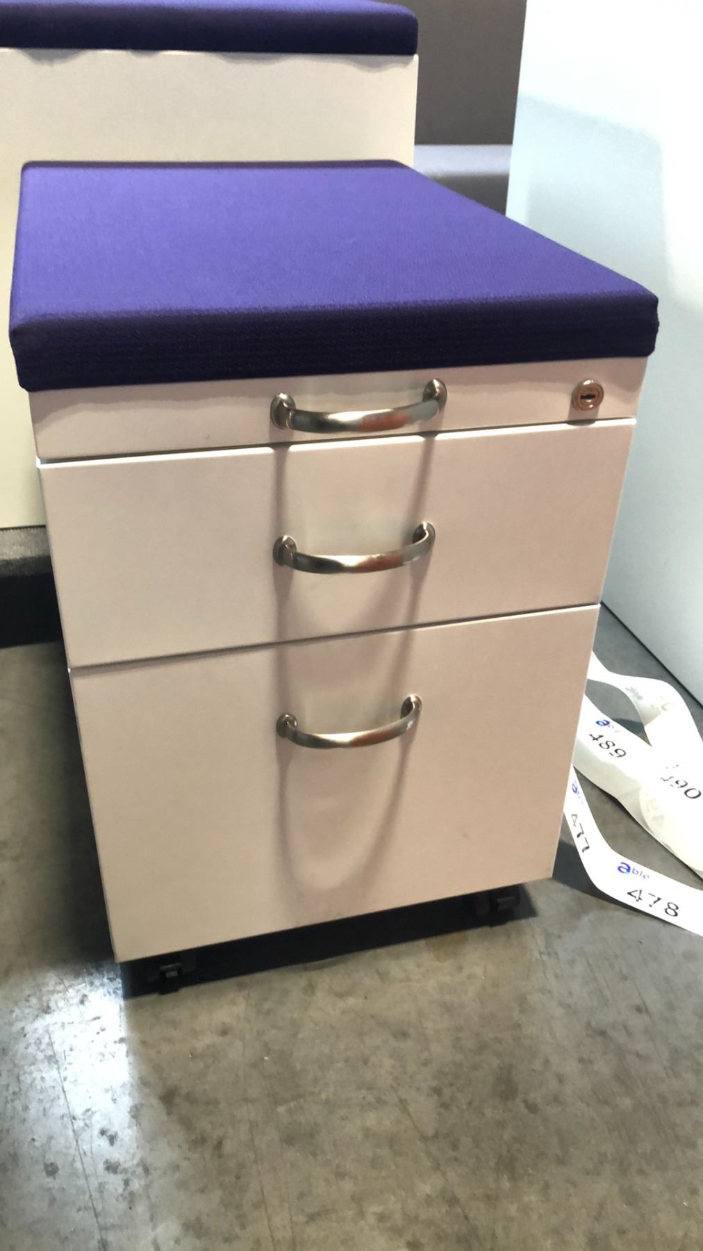 STEELCASE BEIGE 2 DRAWER PURPLE CUSHION TOP MOBILE PEDESTAL