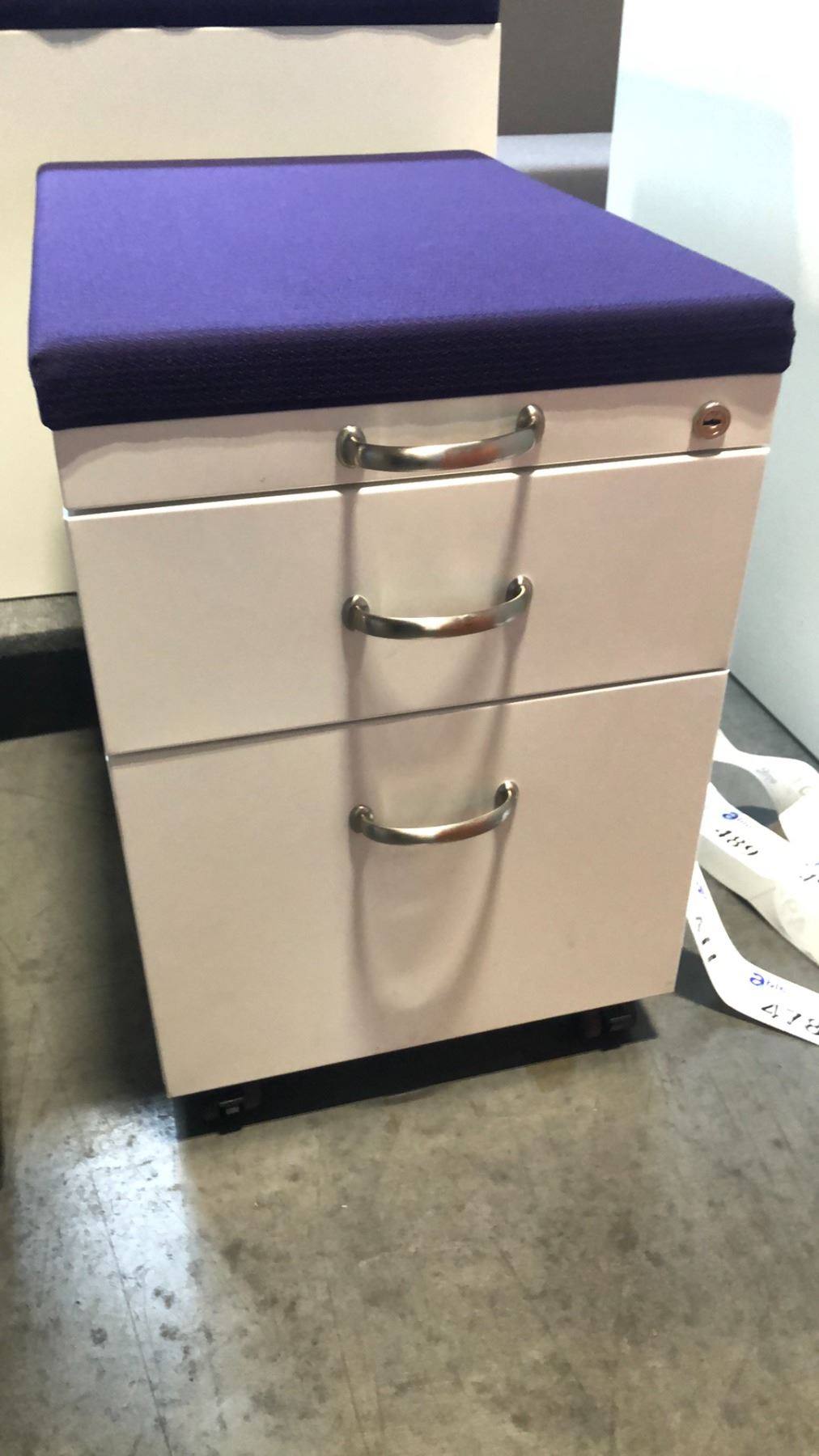 STEELCASE BEIGE 2 DRAWER PURPLE CUSHION TOP MOBILE PEDESTAL