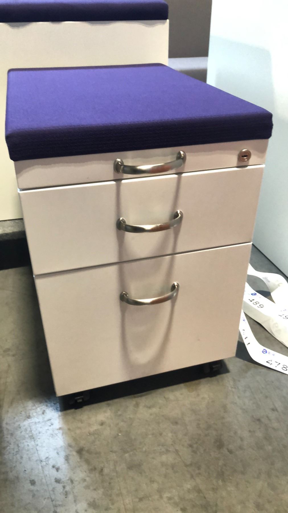 STEELCASE BEIGE 2 DRAWER PURPLE CUSHION TOP MOBILE PEDESTAL