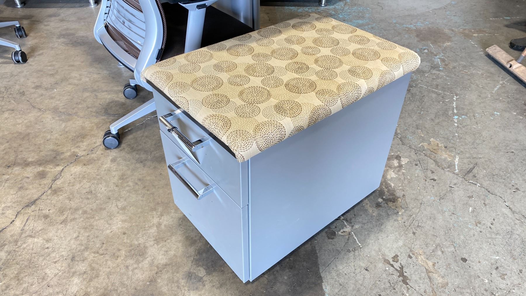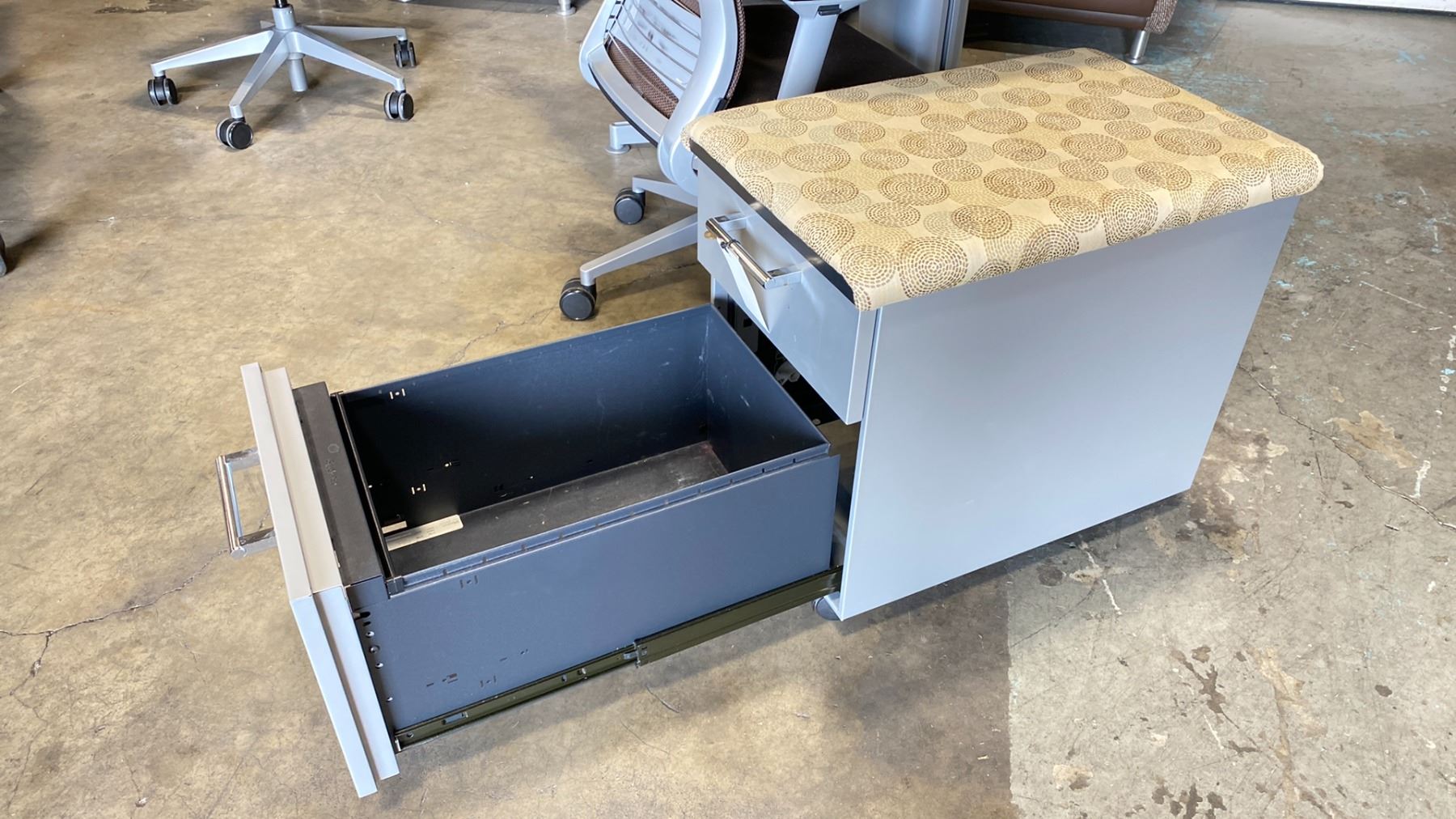 STEELCASE GREY METAL 2 DRAWER PADDED TOP MOBILE SEATING PEDESTAL