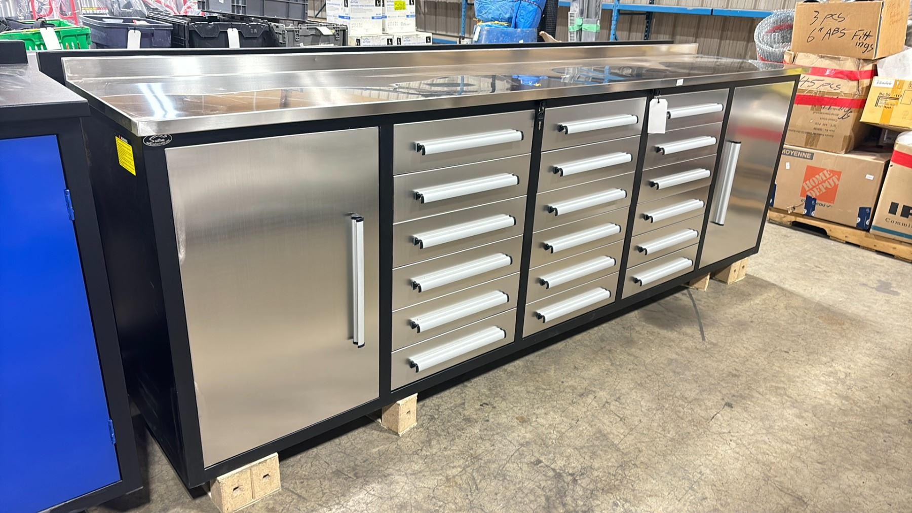STEELMAN 18 DRAWER/ 2 CABINETS STEEL FRONT 10' WORK BENCH