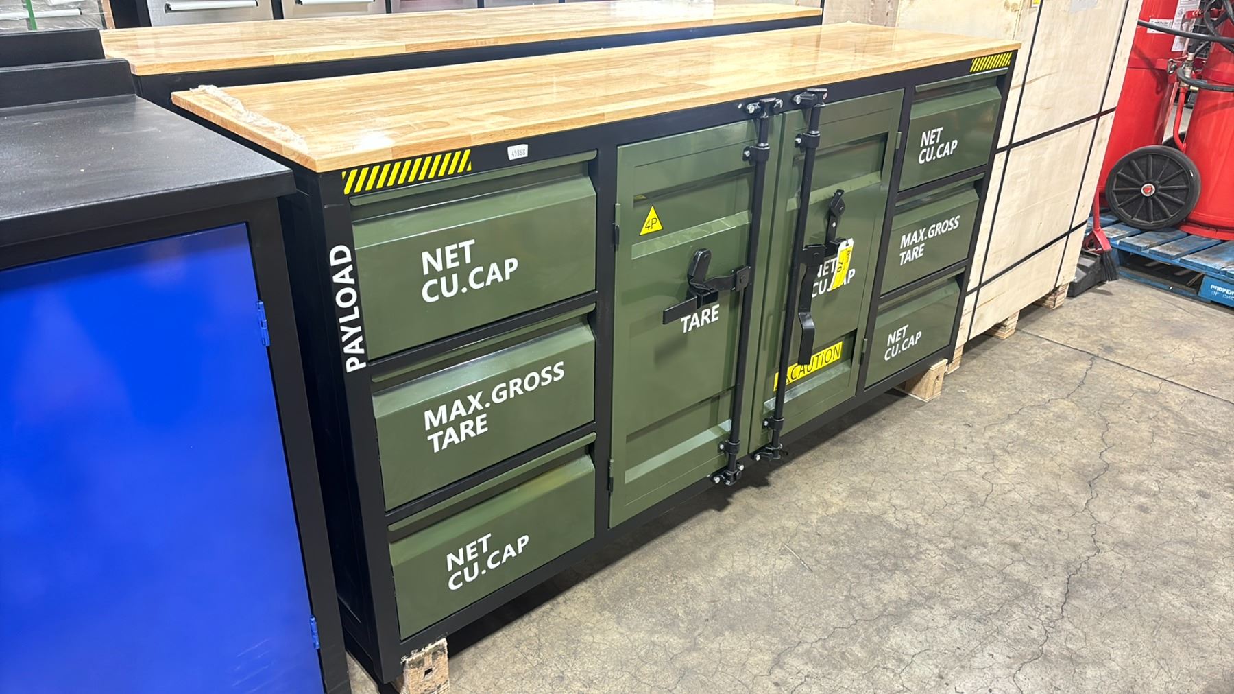 STEELMAN 6 DRAWER/2 DOOR CENTER CABINET MILITARY GREEN 6.5' WORK BENCH