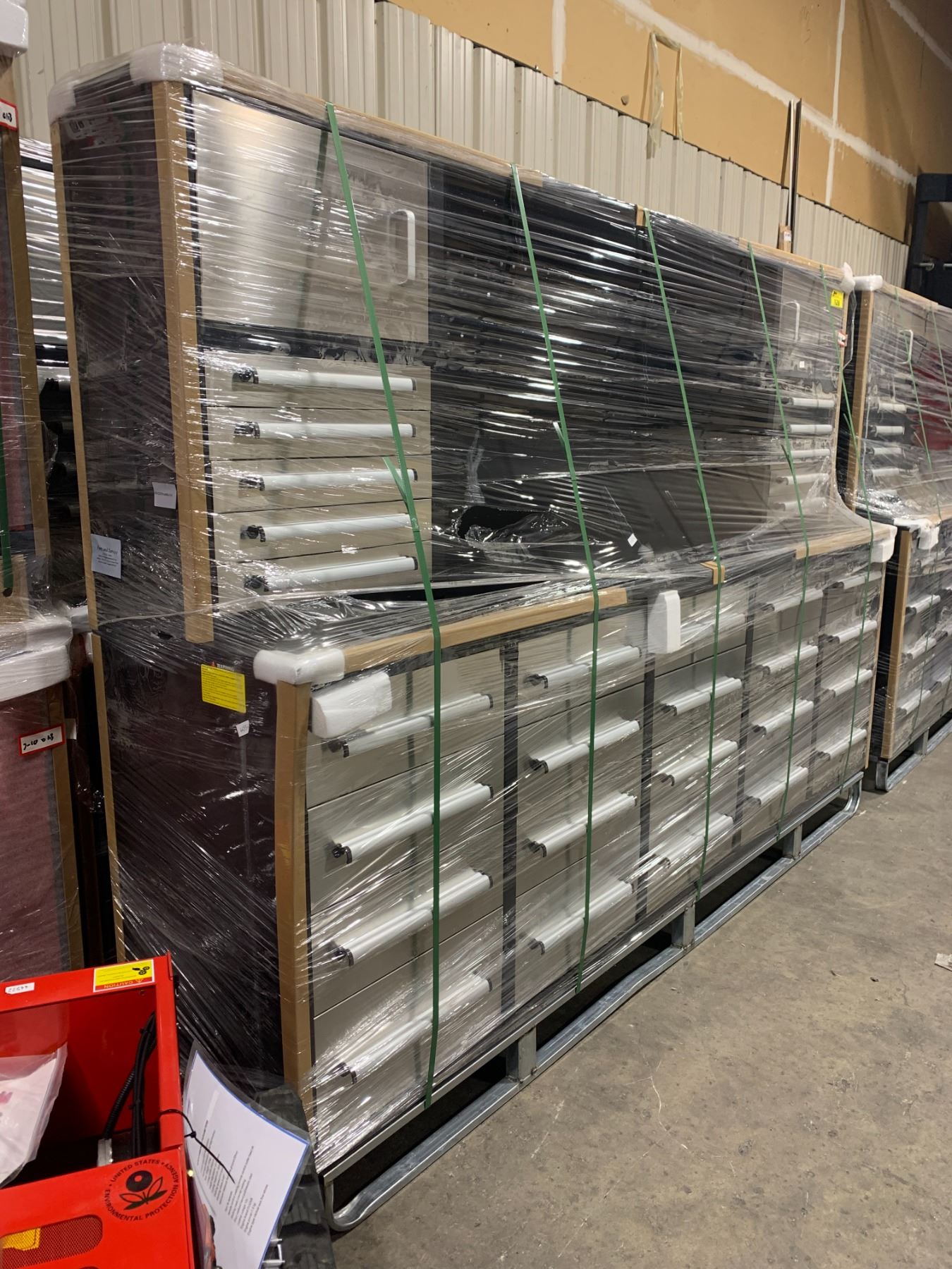 STEELMAN STAINLESS STEEL 30 DRAWER 2 DOOR WORKBENCH 72"H X 112"W X 24"D WITH HUTCH, ANTI-SLIP LINING, LOCKING DRAWERS, KEYS, 3 RAIL SLIDERS WITH 50KG CAPACITY PER DRAWER