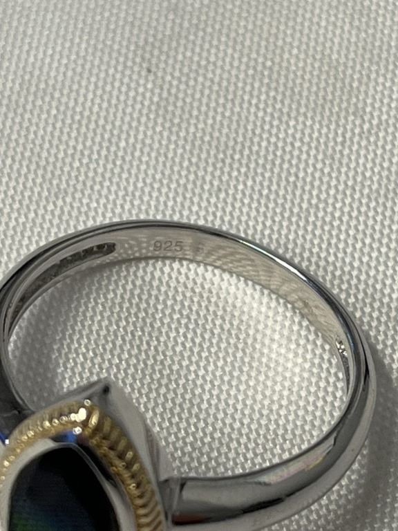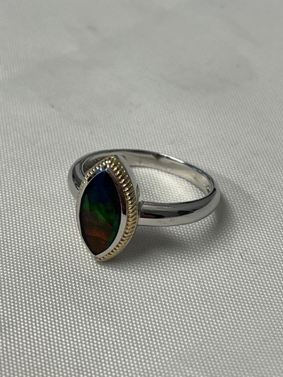 STELING SILVER W/ GENUINE COLOURFUL CANADIAN AMMOLITE STONE RING MARKED 925, HALLMARK RING SIZE 10