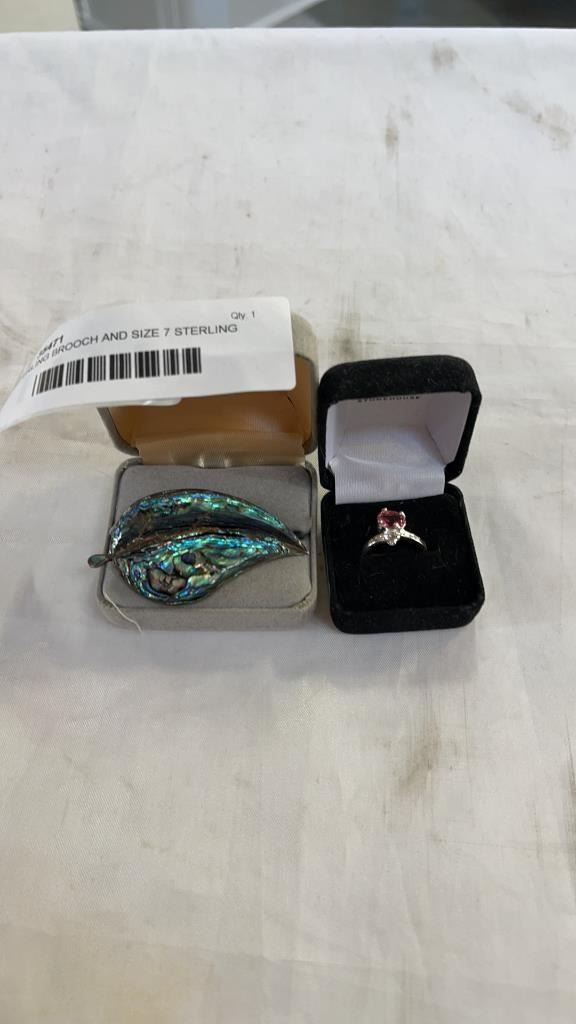 STERLING BROOCH AND SIZE 7 STERLING RING