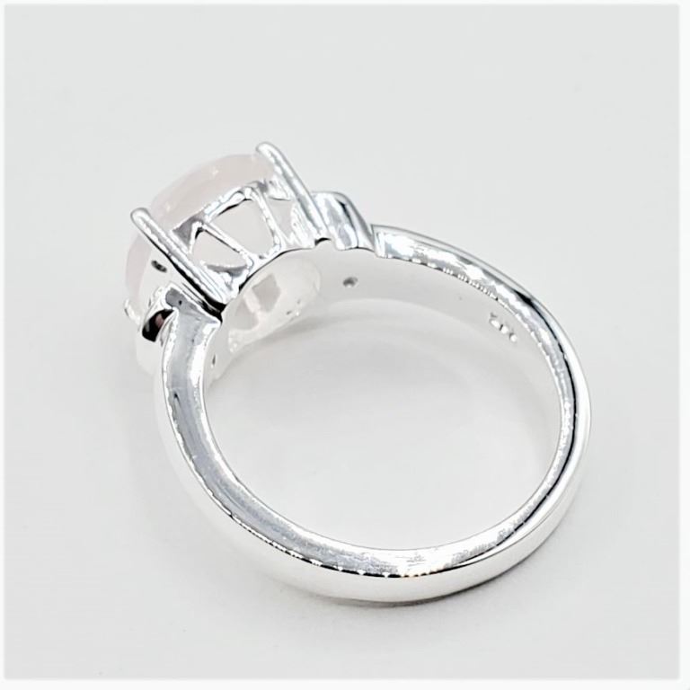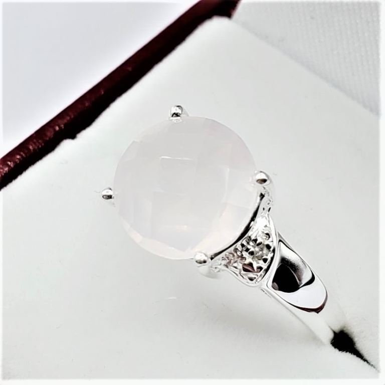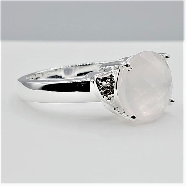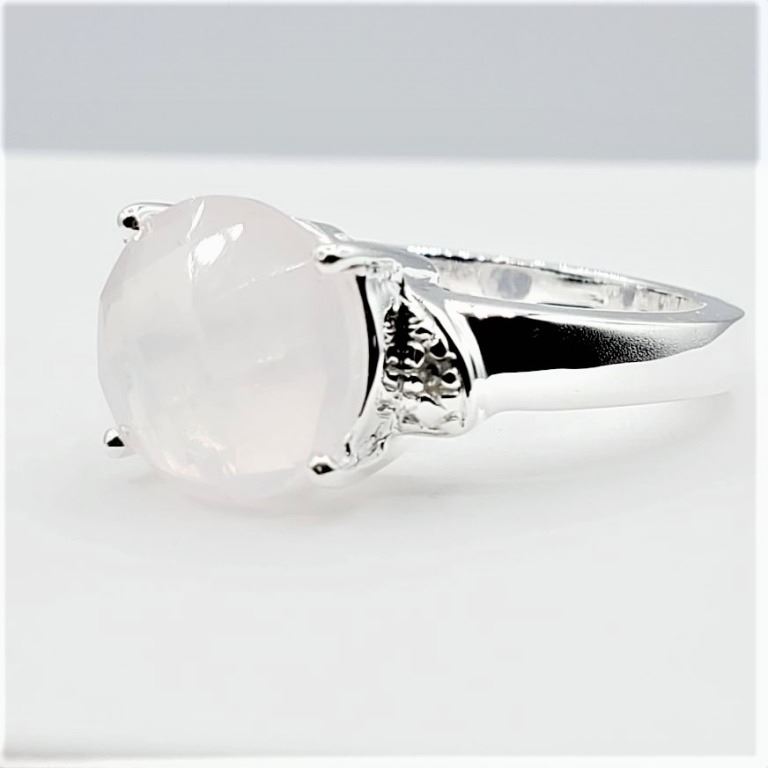STERLING SILVER 10MM X 10MM NATURAL ROSE QUARTZ (2.85CTS) & WHITE SAPPHIRE COCKTAIL RING, SIZE 7, W/A $665.00