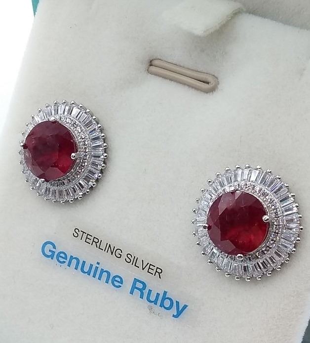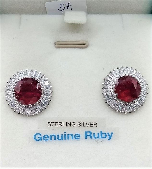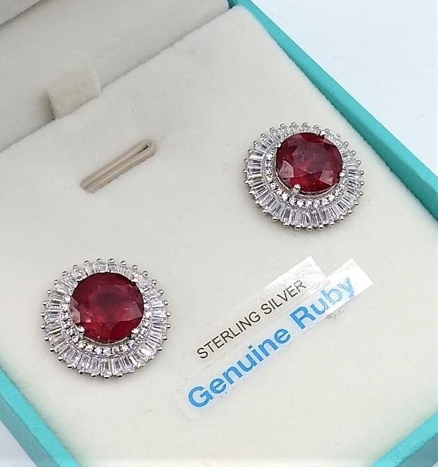 STERLING SILVER 17.24CT RUBY EARRINGS W/ CZ W/ APPRAISAL $1985