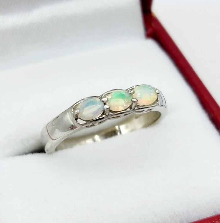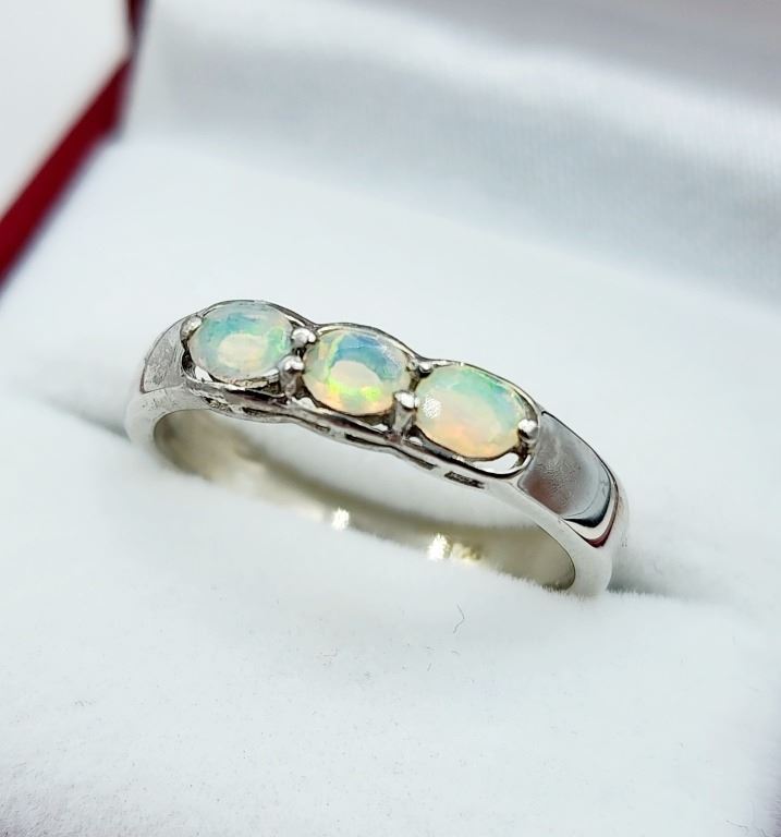 STERLING SILVER 4.4MM NATURAL OPAL (0.40CT) RING, SIZE 7, RETAIL $300. OPAL IS A SYMBOL OF HOPE AND PURITY.