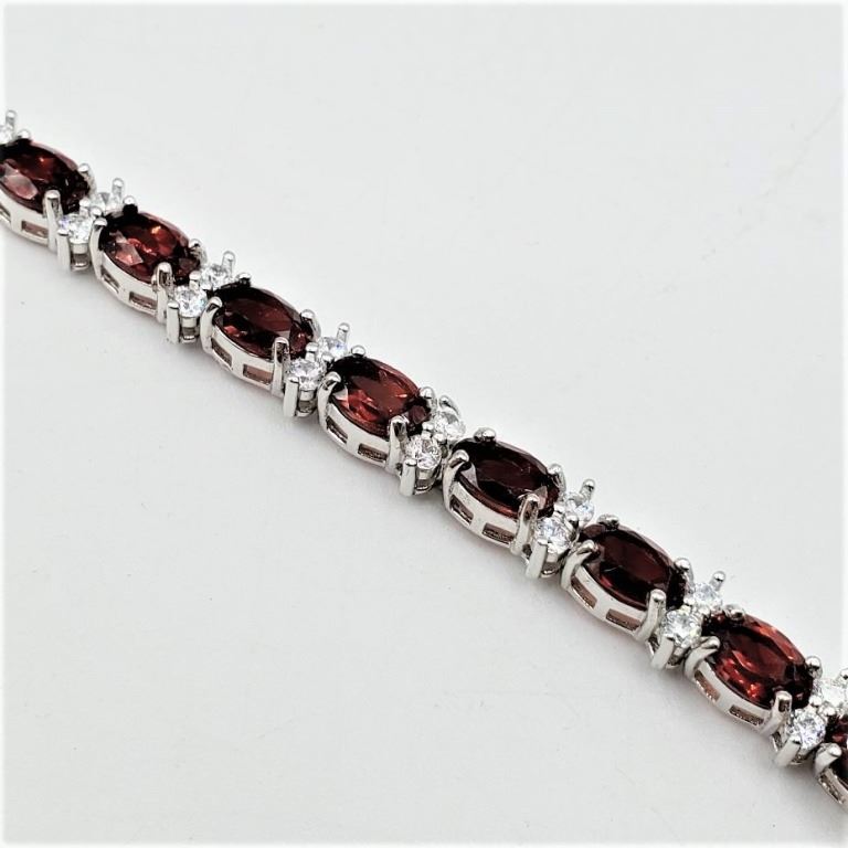 STERLING SILVER 5.9MM X 4MM GENUINE GARNET BRACELET, 21 GARNET (9.65CTS), W/A $965.00