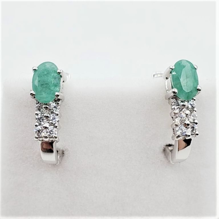 STERLING SILVER 6MM X 4MM GENUINE EMERALD (0.72CTS) & CZ EARRINGS, W/A $880.00