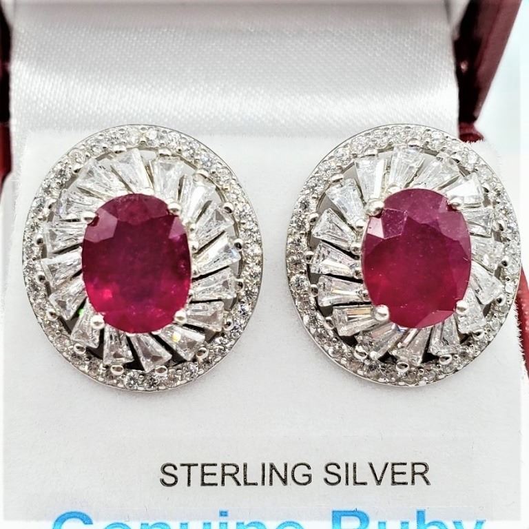 STERLING SILVER 8.9MM X 6.8MM NATURAL RUBY (4.5CTS) & CZ EARRINGS, W/A $1215.00