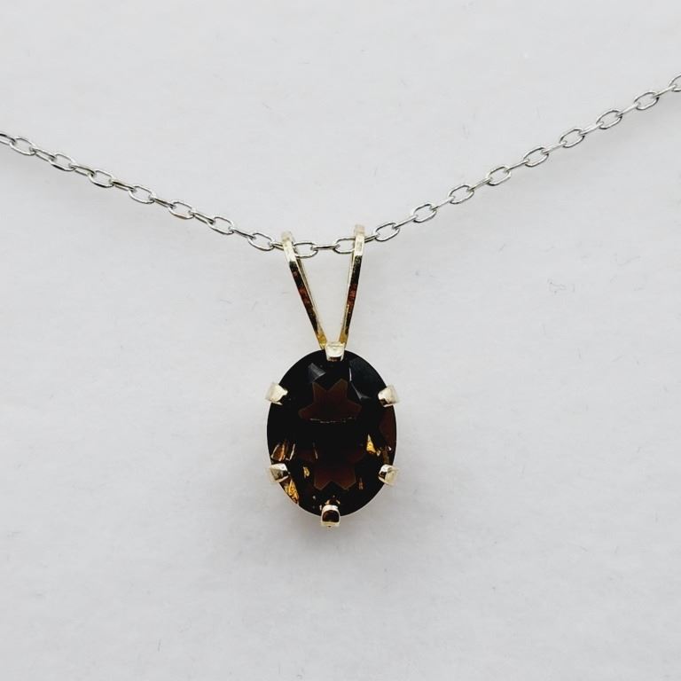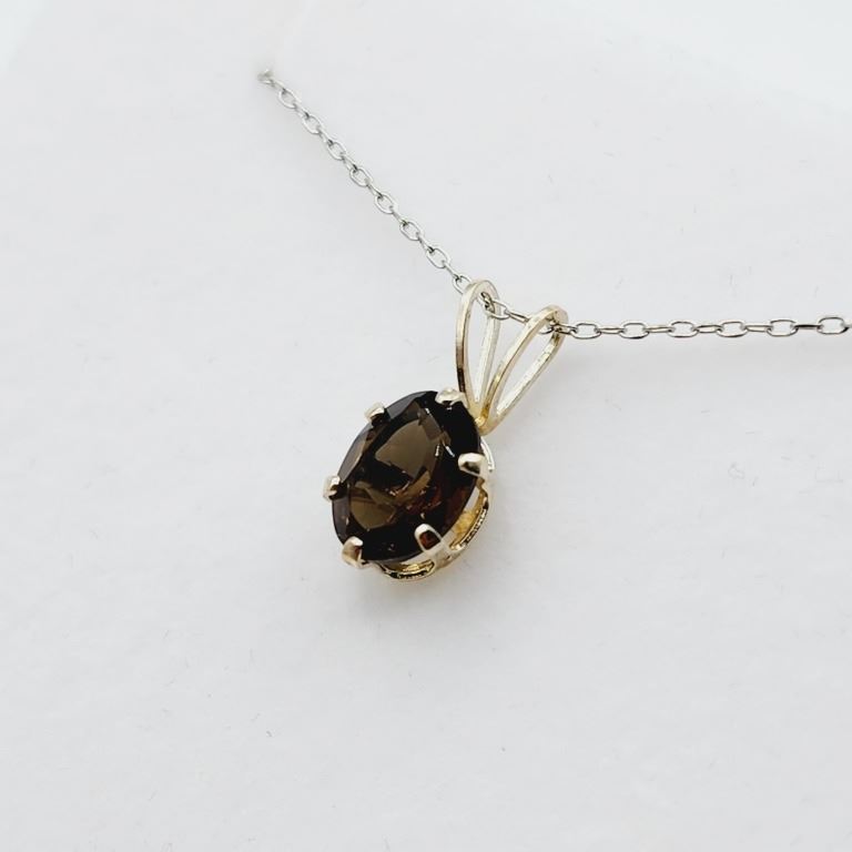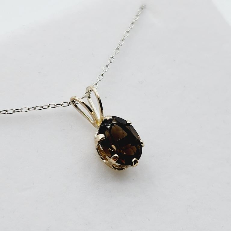 STERLING SILVER 9 X 7MM NATURAL SMOKY QUARTZ (1.6CT) WITH STERLING SILVER CHAIN, W/A $500.00.