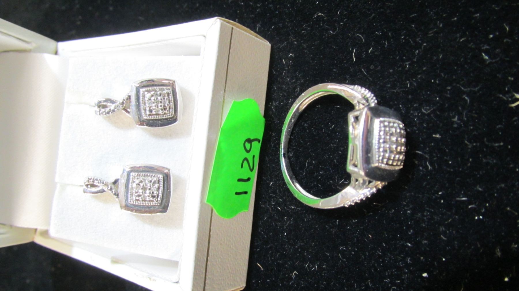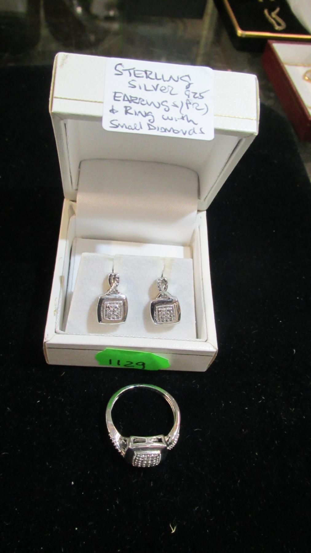 STERLING SILVER . 925 EARRINGS & RING W/SM. DIAMONDS