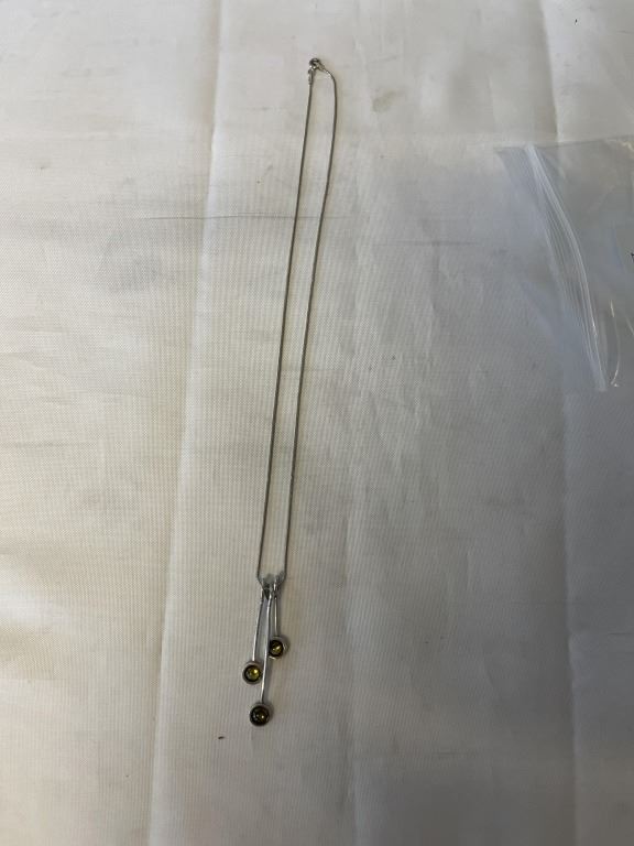 STERLING SILVER CHAIN WITH 3 STONES PENDANT NECKLACE MARKED 925 ITALY
