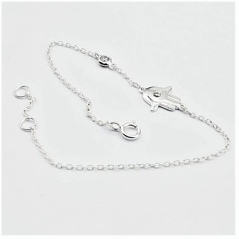 STERLING SILVER CZ "EVIL-EYE" HAMSA BRACELET, RETAIL $120.00