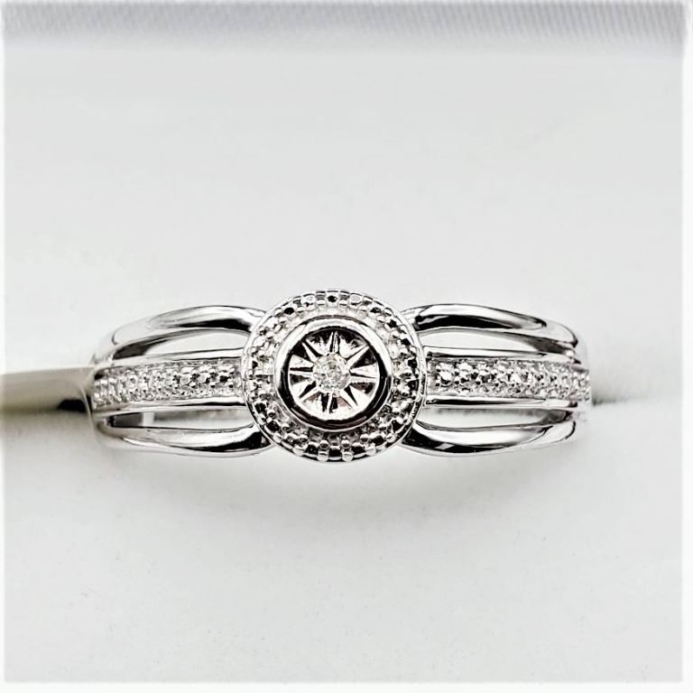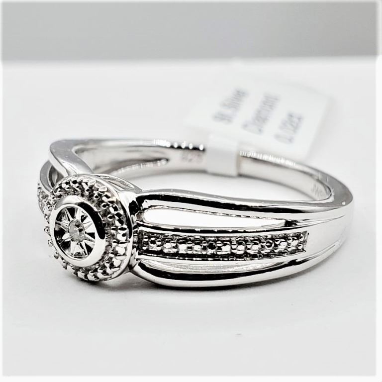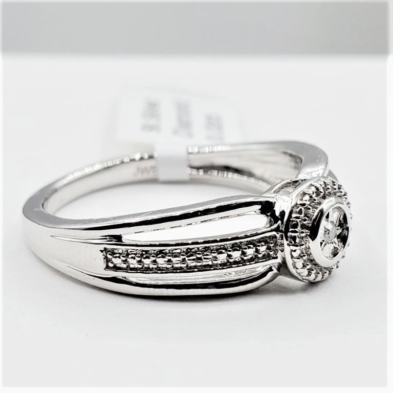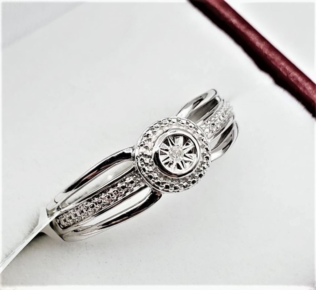 STERLING SILVER DIAMOND RING, 0.02CTS, W/A $580.00, SIZE 6.75