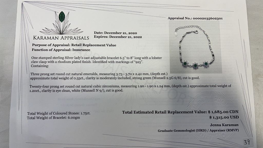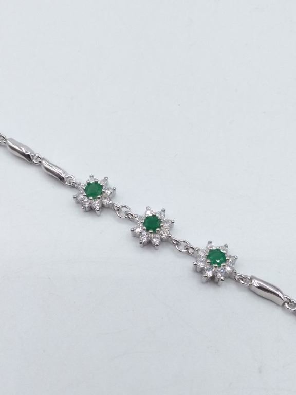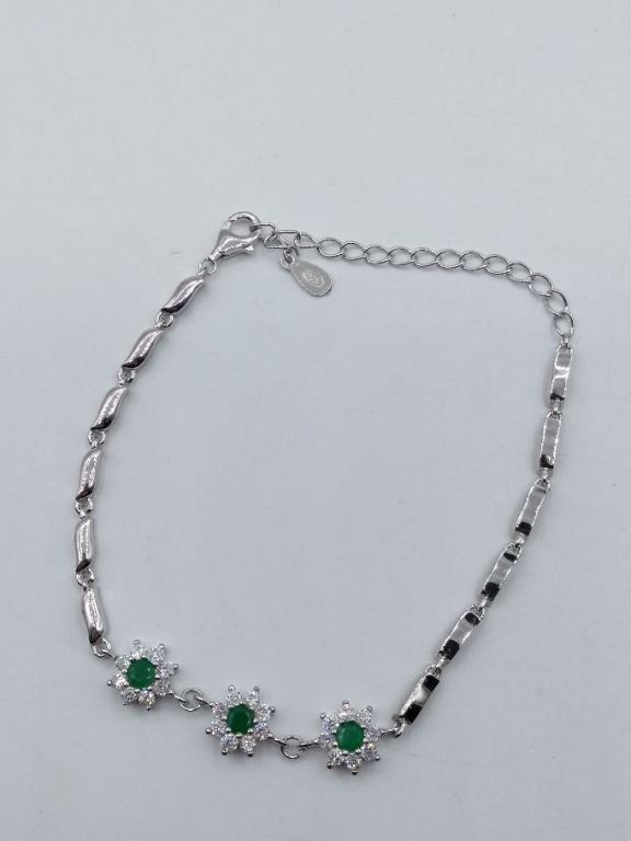 STERLING SILVER FLOWER BRACELET SET W/ EMERALDS AND ACCENTED W/ CZ W/ APPRAISAL $1685