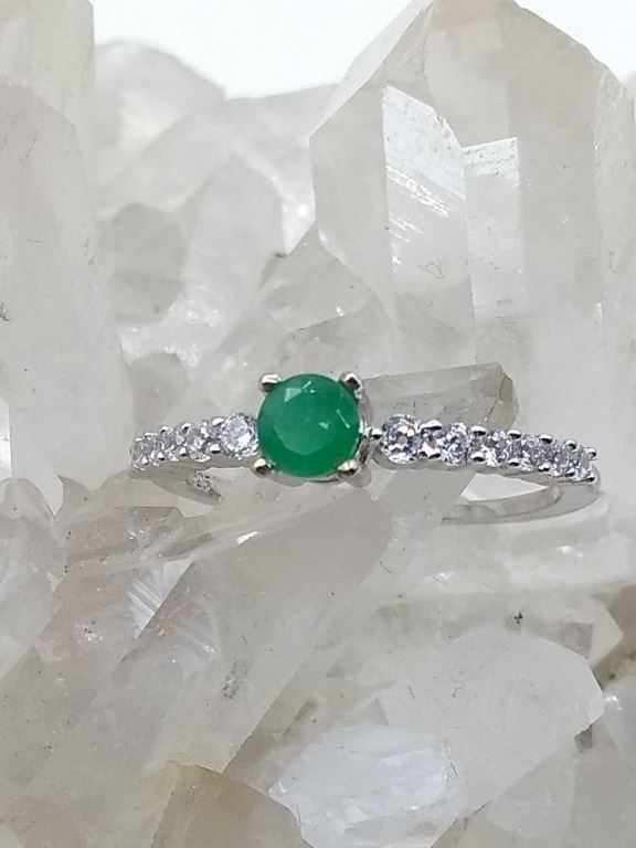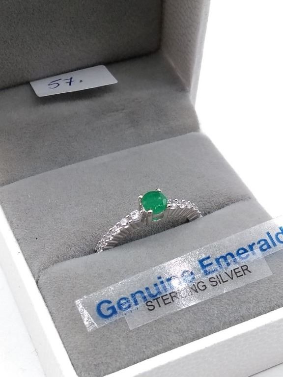 STERLING SILVER GENUINE EMERALD AND CZ BAND W/ APPRAISAL $685