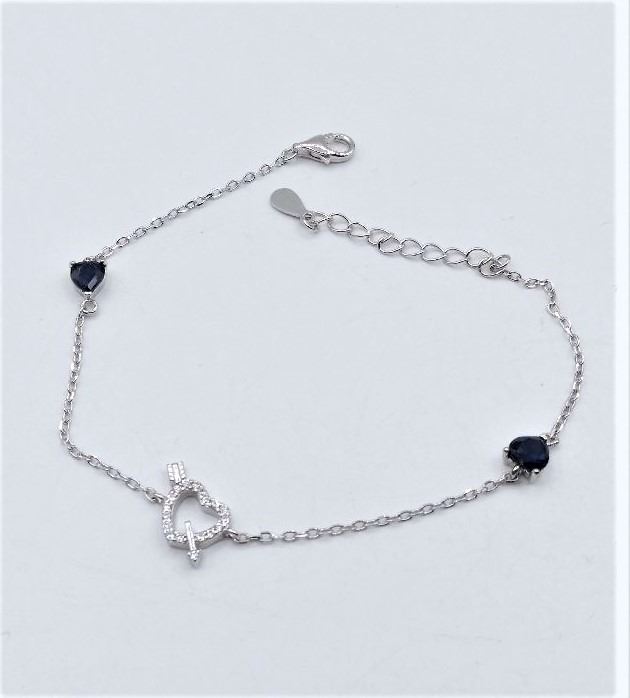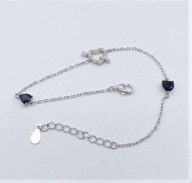 STERLING SILVER HEART SHAPE SAPPHIRE BRACELET W/ CZ HEARTS W/ APPRAISAL $845