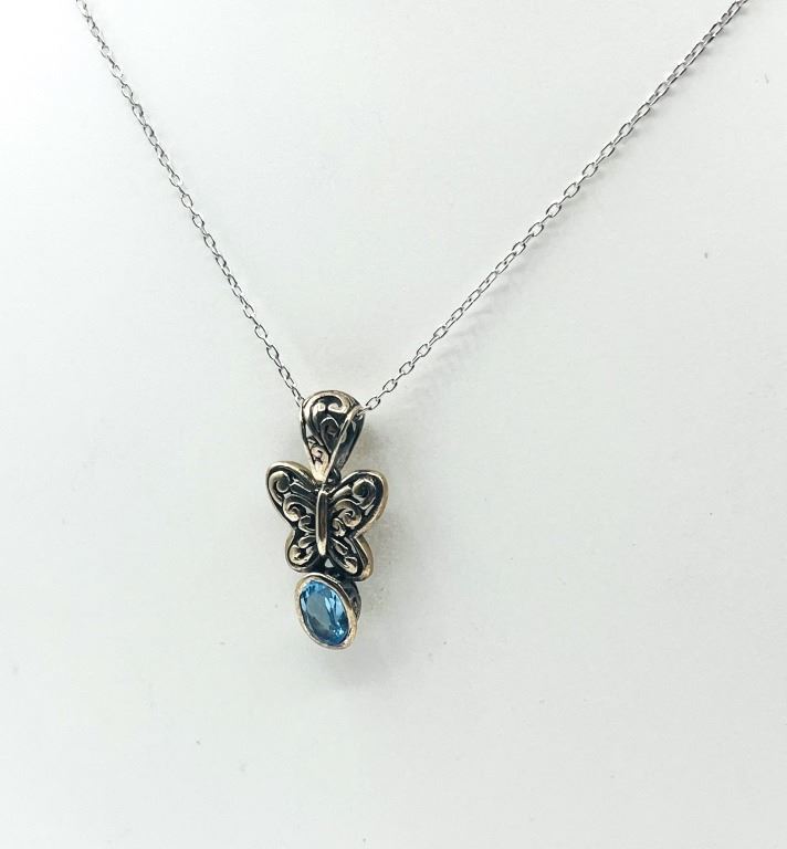 STERLING SILVER NATURAL BLUE TOPAZ (0.85CT) PENDANT WITH STERLING SILVER CHAIN, W/A $300.00. BLUE TOPAZ IS THE BIRTHSTONE FOR DECEMBER.
