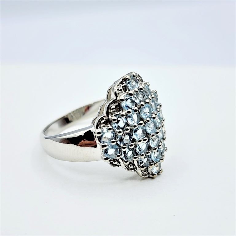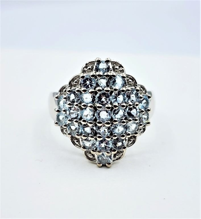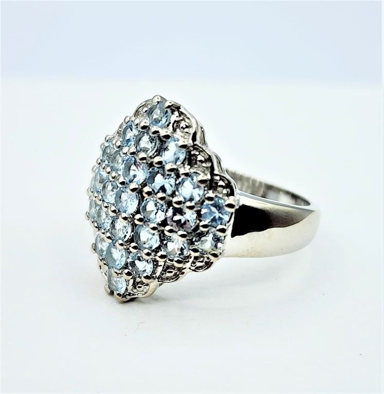 STERLING SILVER NATURAL BLUE TOPAZ RING, 28 BLUE TOPAZ (1.68CTS), W/A $420.00, SIZE 7, BLUE TOPAZ IS THE BIRTHSTONE FOR DECEMBER.