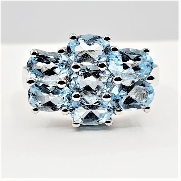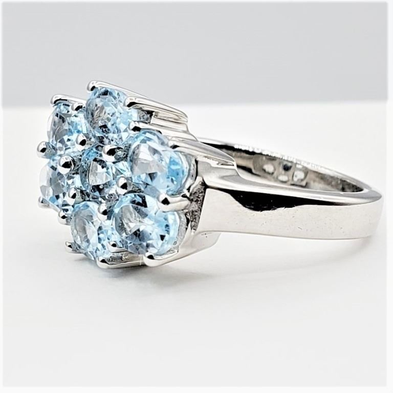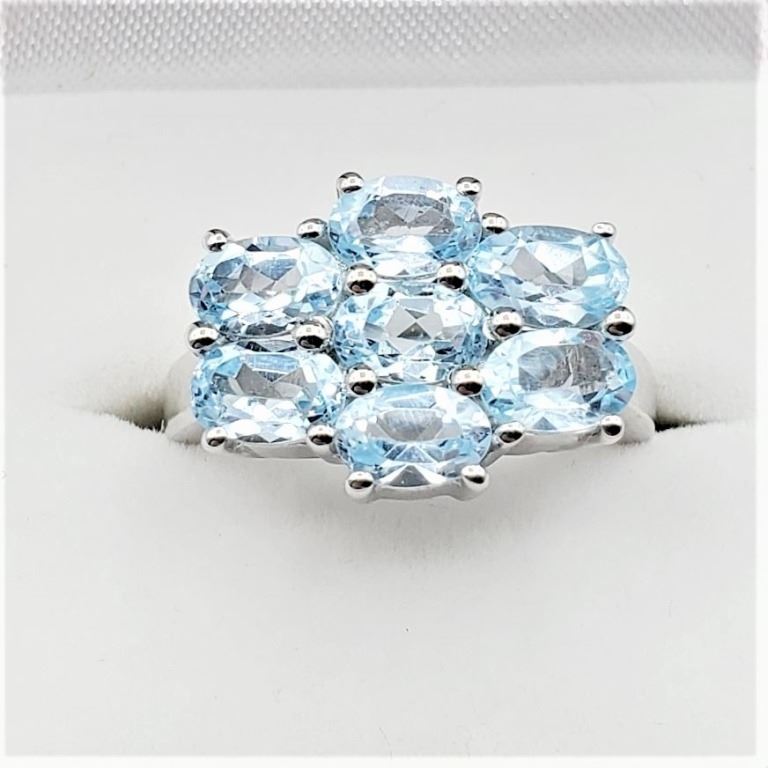 STERLING SILVER NATURAL BLUE TOPAZ RING, 7 TOPAZ (3.36CTS), W/A $685.00, SIZE 7