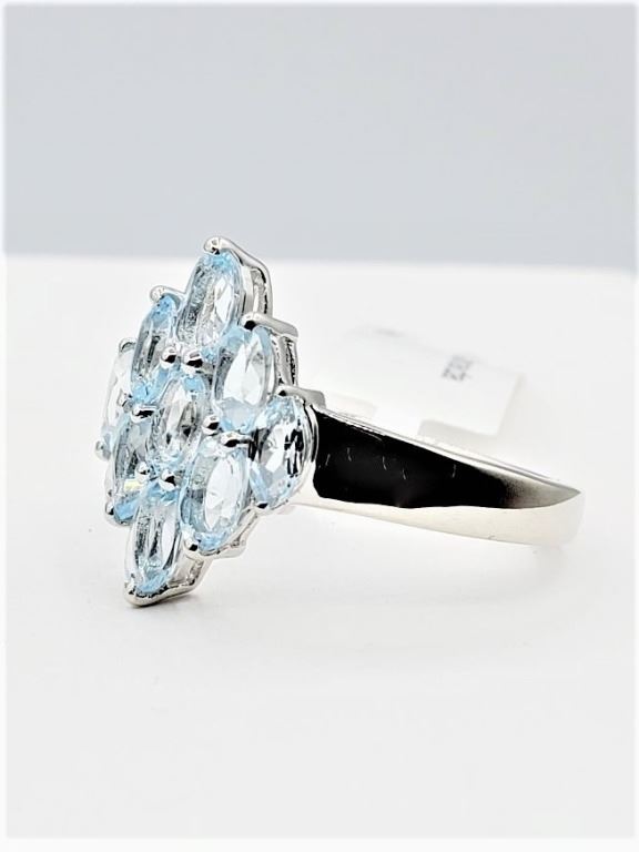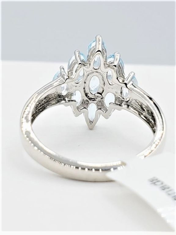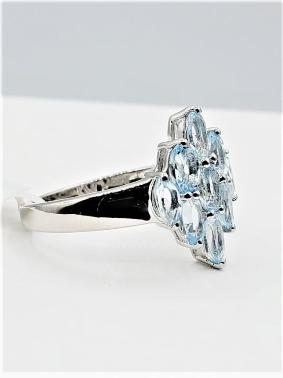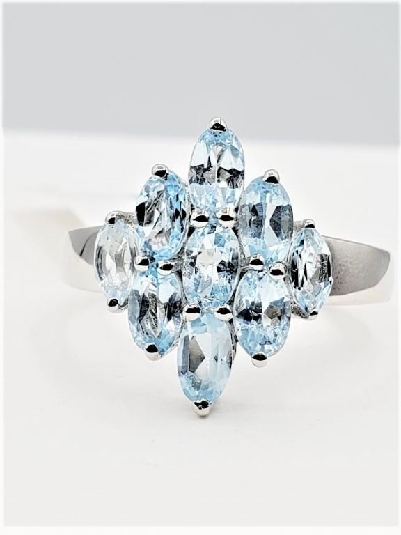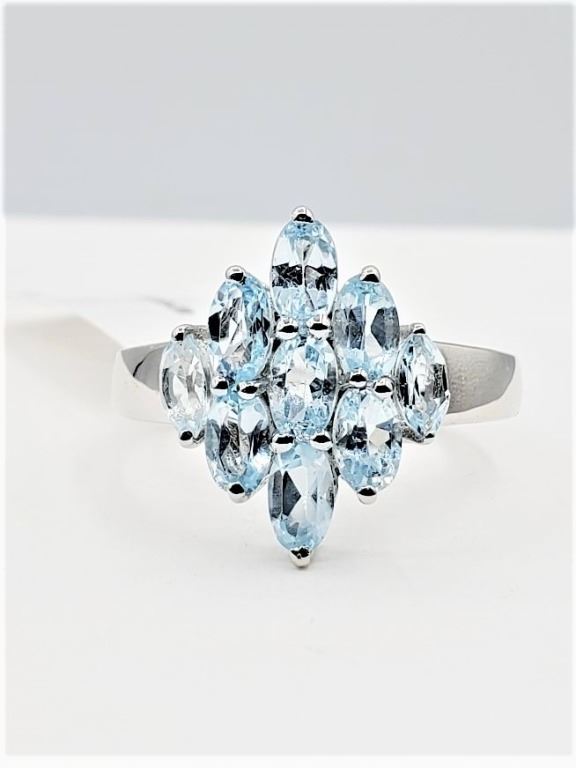 STERLING SILVER NATURAL BLUE TOPAZ RING, 9 TOPAZ (2.43CTS), W/A $515.00, SIZE 7, BLUE TOPAZ IS THE BIRTHSTONE FOR DECEMBER.