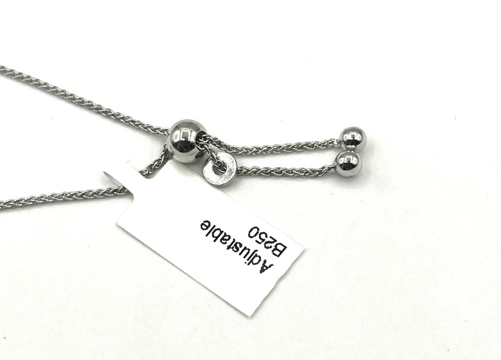 STERLING SILVER NATURAL DIAMOND (0.11CT) ADJUSTABLE BRACELET, W/A $650.00. DIAMOND IS THE BIRTHSTONE FOR APRIL.