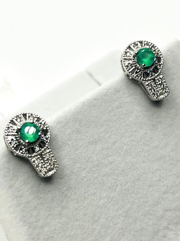 STERLING SILVER NATURAL GREEN ONYX EARRING, RETAIL $350.00