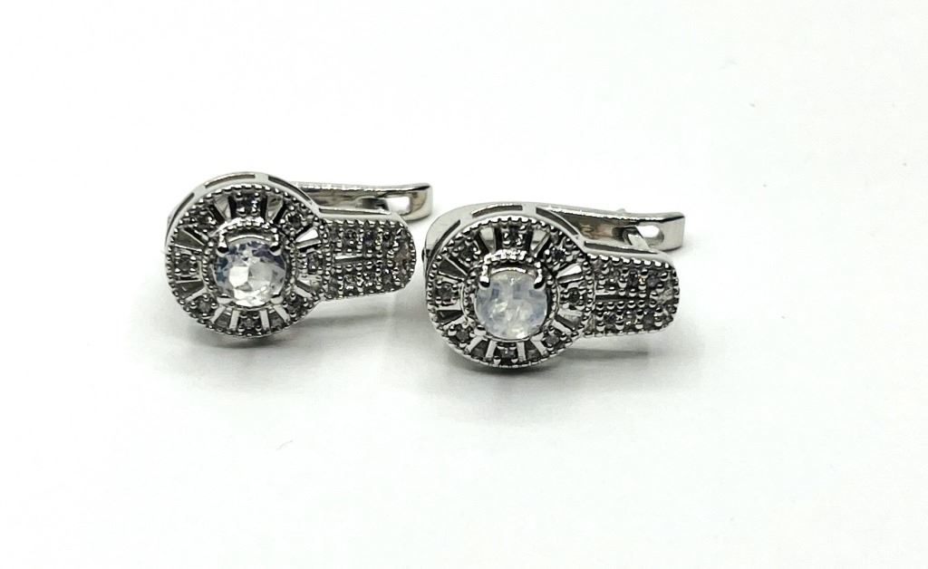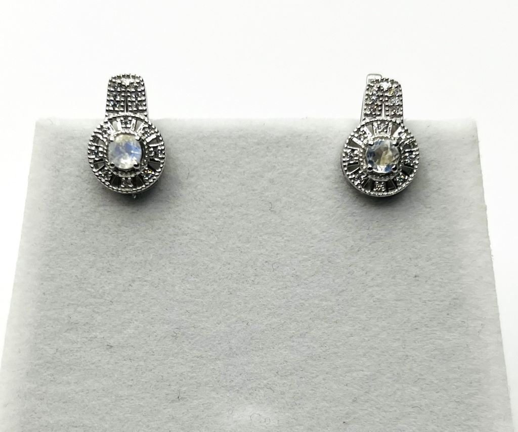 STERLING SILVER NATURAL MOONSTONE (0.42CT) AND WITH CZ (0.10CT) EARRINGS, W/A $400.00.