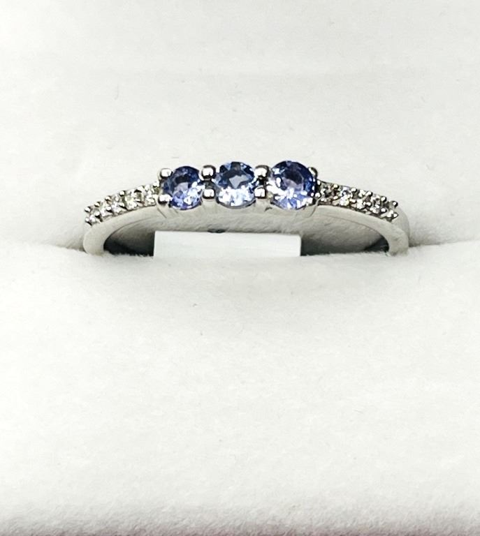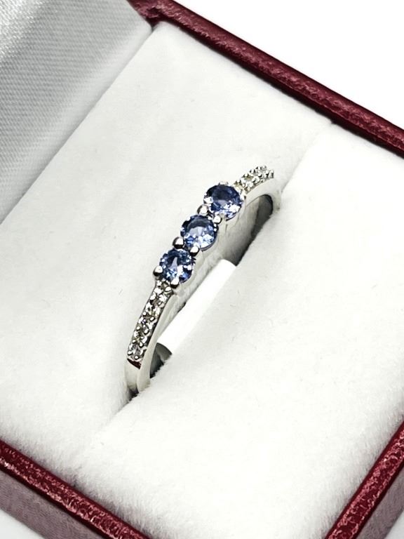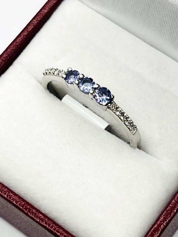 STERLING SILVER NATURAL TANZANITE (0.33CT) WITH CZ (0.10CT) RING, SIZE 9, W/A $270.00. TANZANITE IS THE BIRTHSTONE FOR DECEMBER.
