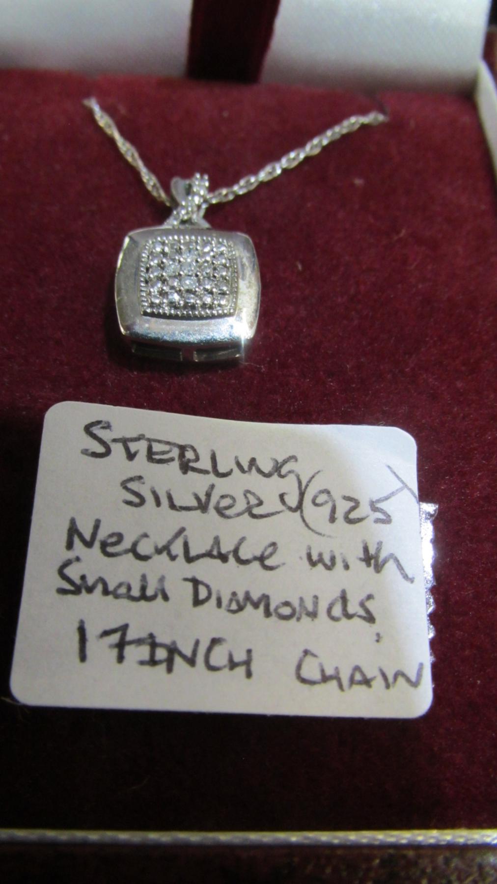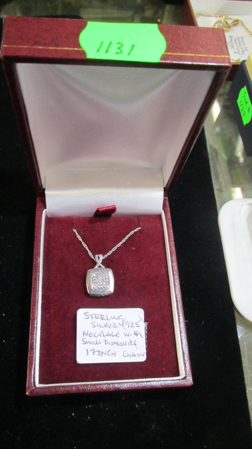 STERLING SILVER NECKLACE W/PENDANT W/SMALL DIAMONDS, 17  CHAIN