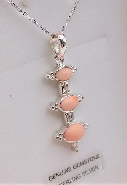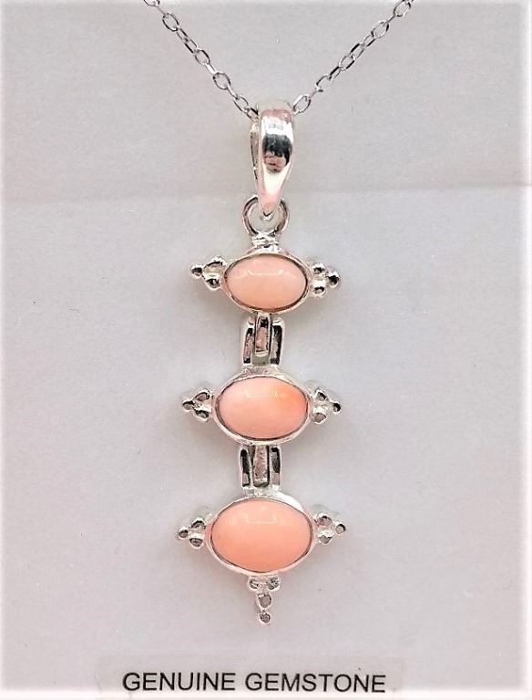 STERLING SILVER PENDANT AND CHAIN SET W/ GENUINE CORAL STONE RETAIL $300